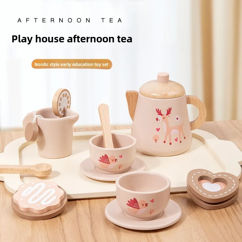 EDULAND Multi-functional Simulation Wooden Kitchen Play Set for Afternoon Tea & Dessert Cake Making Toy Set