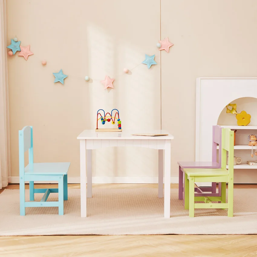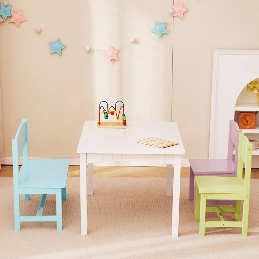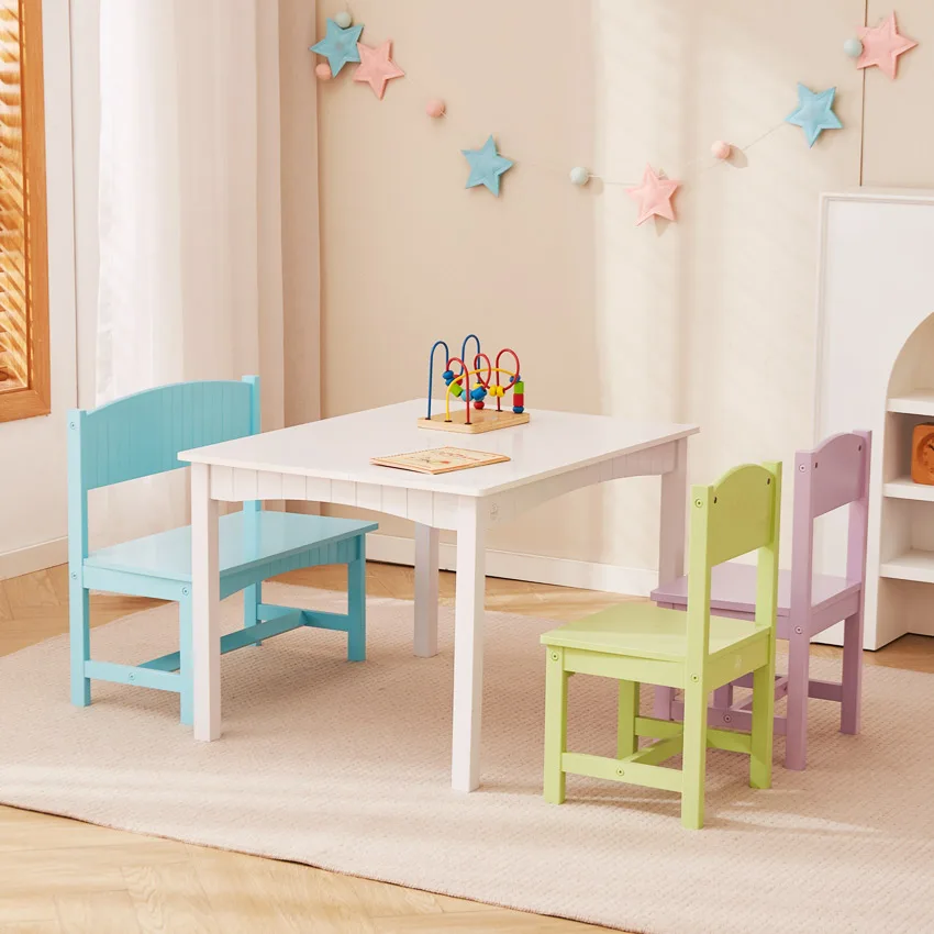 EDULAND Wholesale Modern Bedroom Wooden Children Study Table Four Chairs Set with Safety Features Eco-Friendly Multifunction