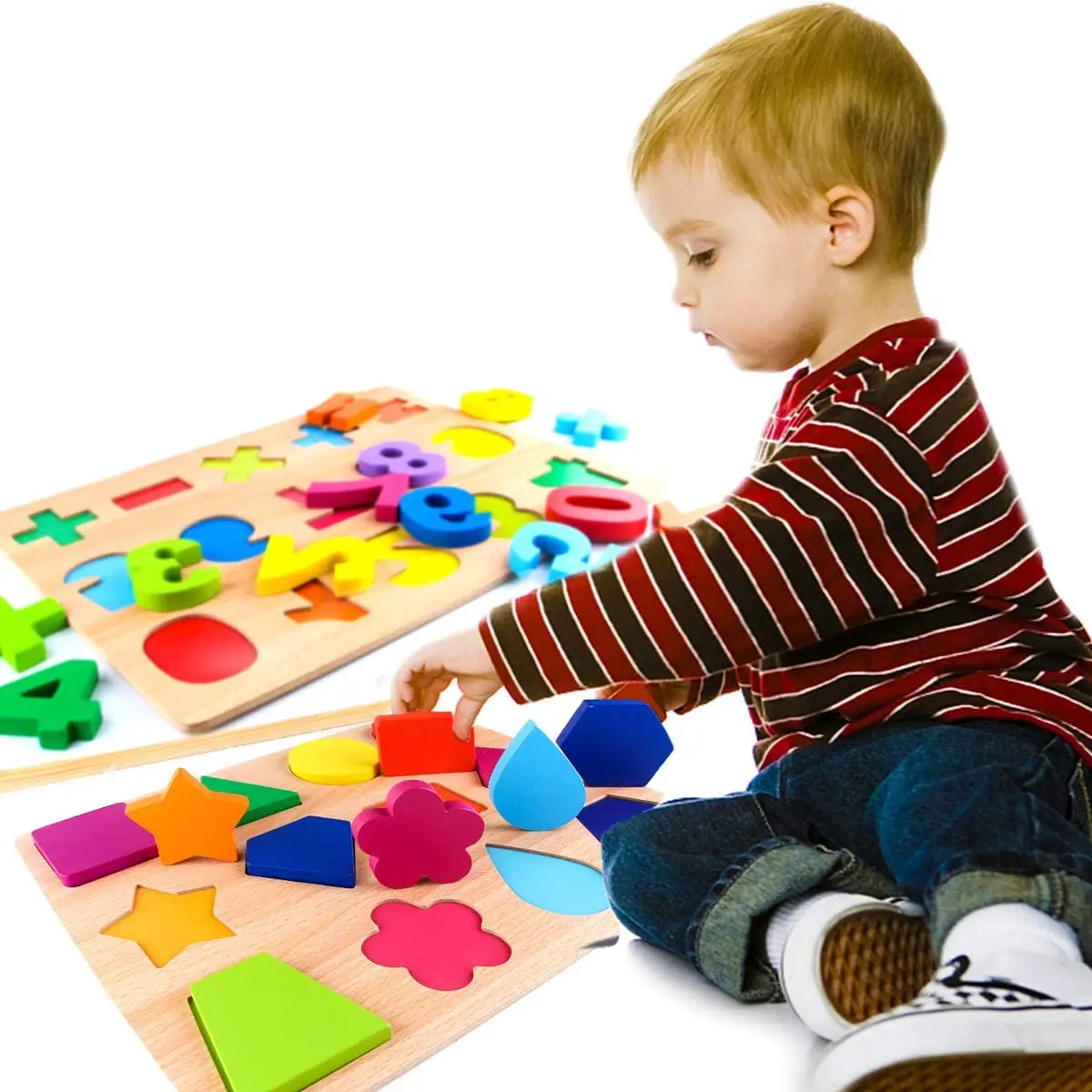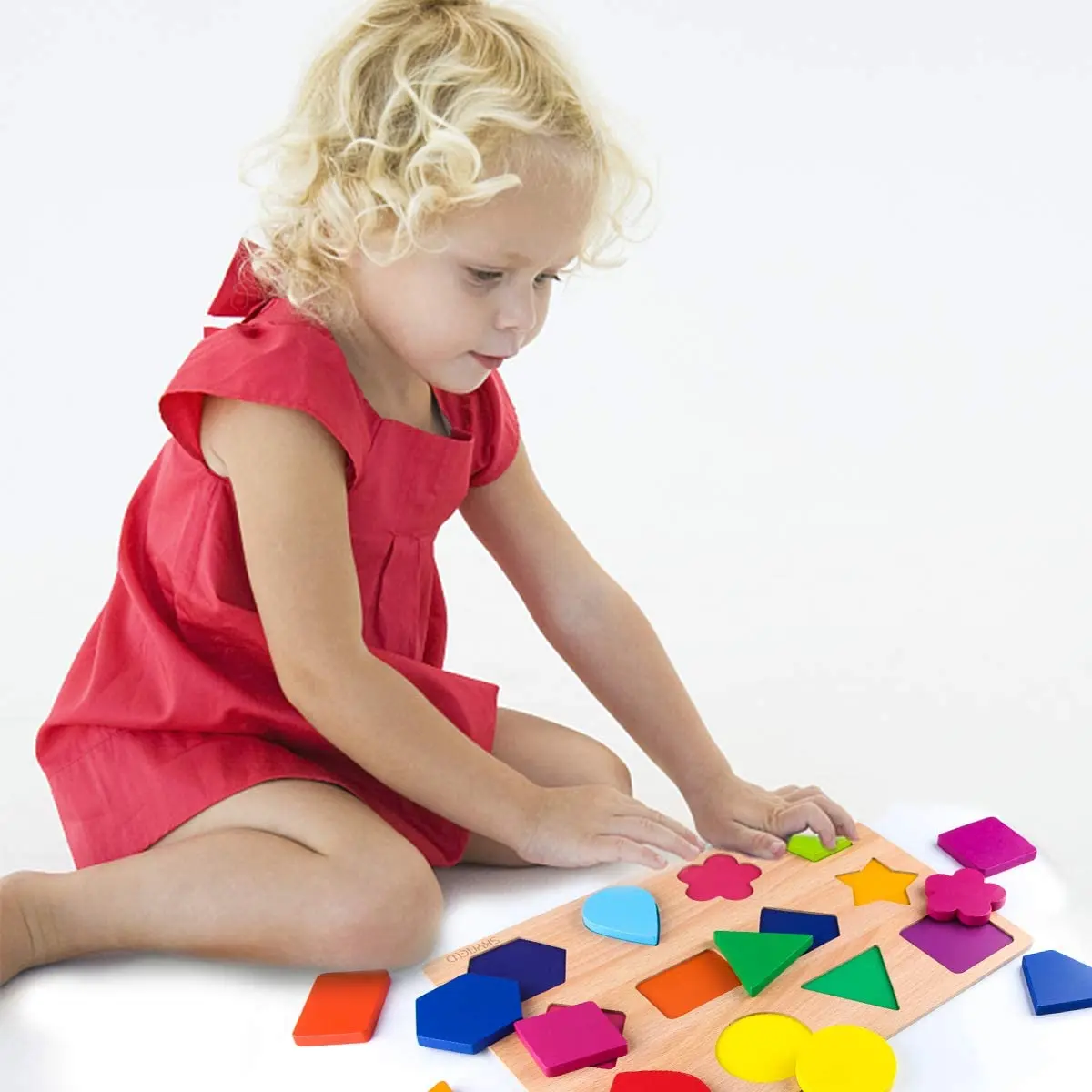 EDULAND Montessori Educational Set 3D Wooden Puzzle DIY Toys for Preschool Learning Wood Puzzles for Kids
