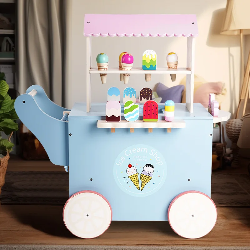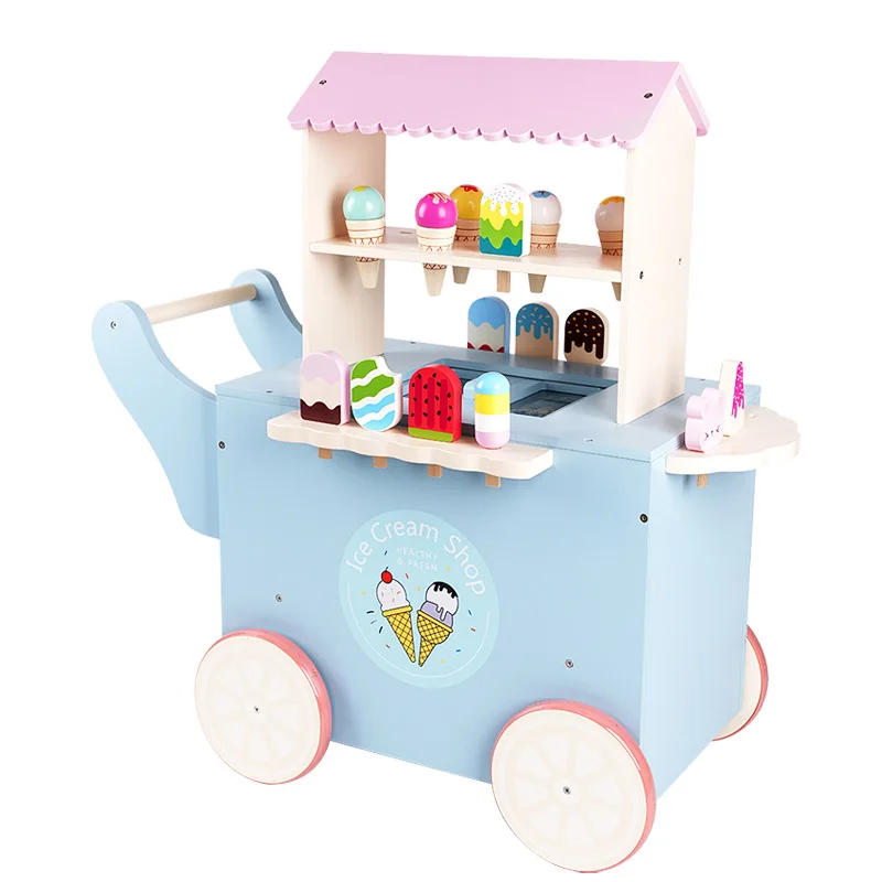 EDULAND Children's Wooden Kitchen Play Set Parent-Child Interactive Educational Toy with Ice Cream Car & Friends Sharing Feature