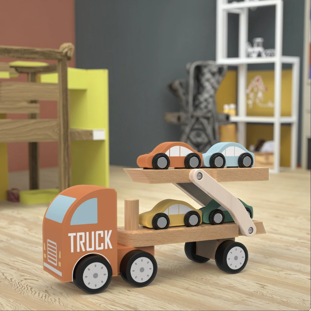 EDULAND Montessori Educational Pretend Play Carrier Car Toy Nontoxic Wooden Toy for Children Aged 18 Months+ Fun Preschool Toys