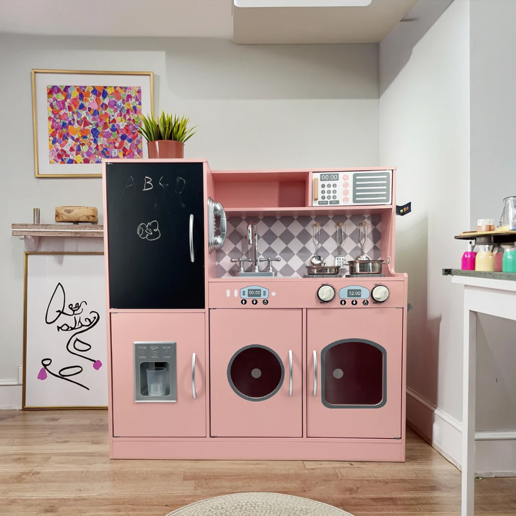 EDULAND Unisex Pretend Play Toys Modern Wooden Kitchen Set with Multifunctional Induction Cooker Educational Food Toy for Kids