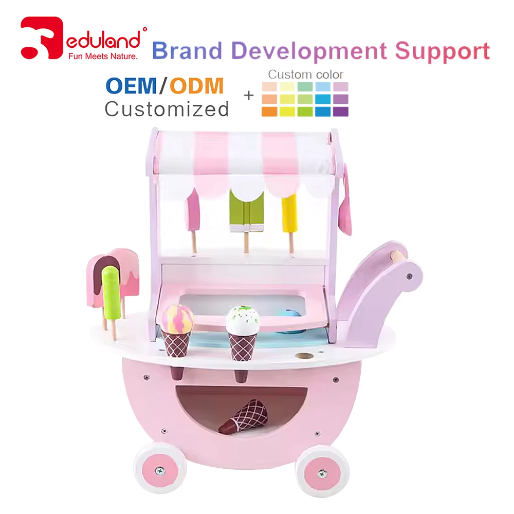 EDULAND Child House Simulation Ice Cream Truck Girl Shopping Cart Toy Supermarket Cart Wooden Toy