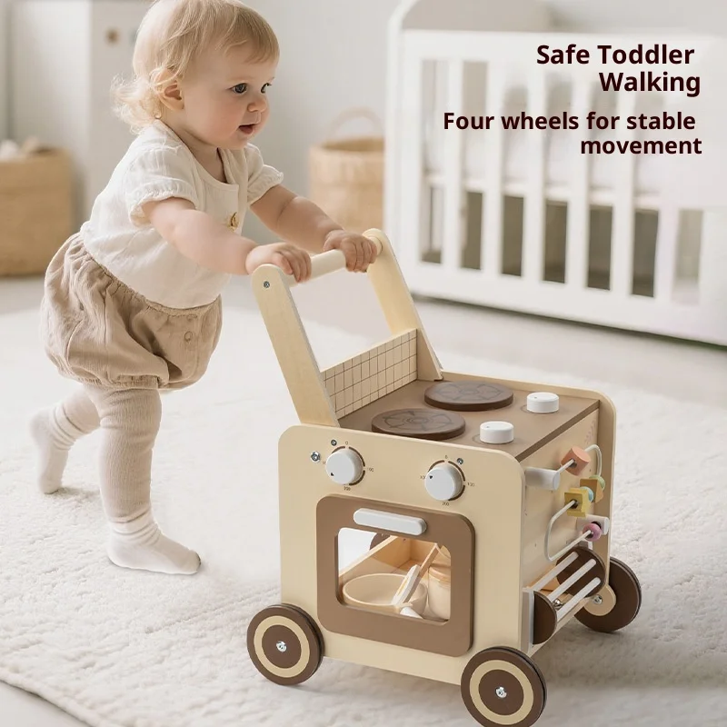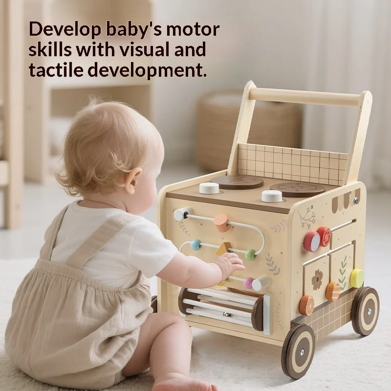 EDULAND Wooden Multifunctional Beaded Building Block Stroller Young Children Baby Walker Educational Early Education Toy Kids