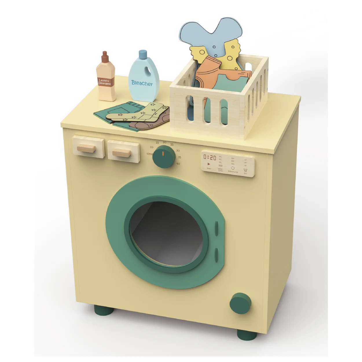 EDULAND 3-Year Old Washing Machine Toys Educational Multifunctional Pretend Play Wooden Toys