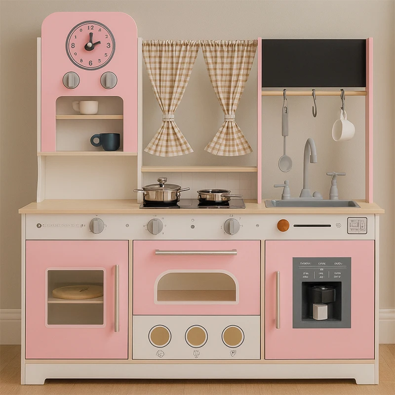 EDULAND Cocina De Juguete Wooden Toy Kitchen Big Kitchen Set Toy for Children Kids Play Kitchen Food Toys
