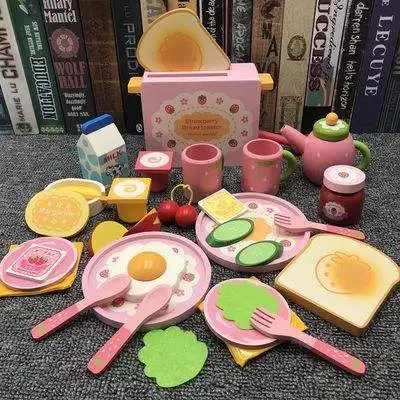 EDULAND Children's Wooden Strawberry Toast Toaster Set Combination Home Appliances Kitchen & Food Toys Simulation