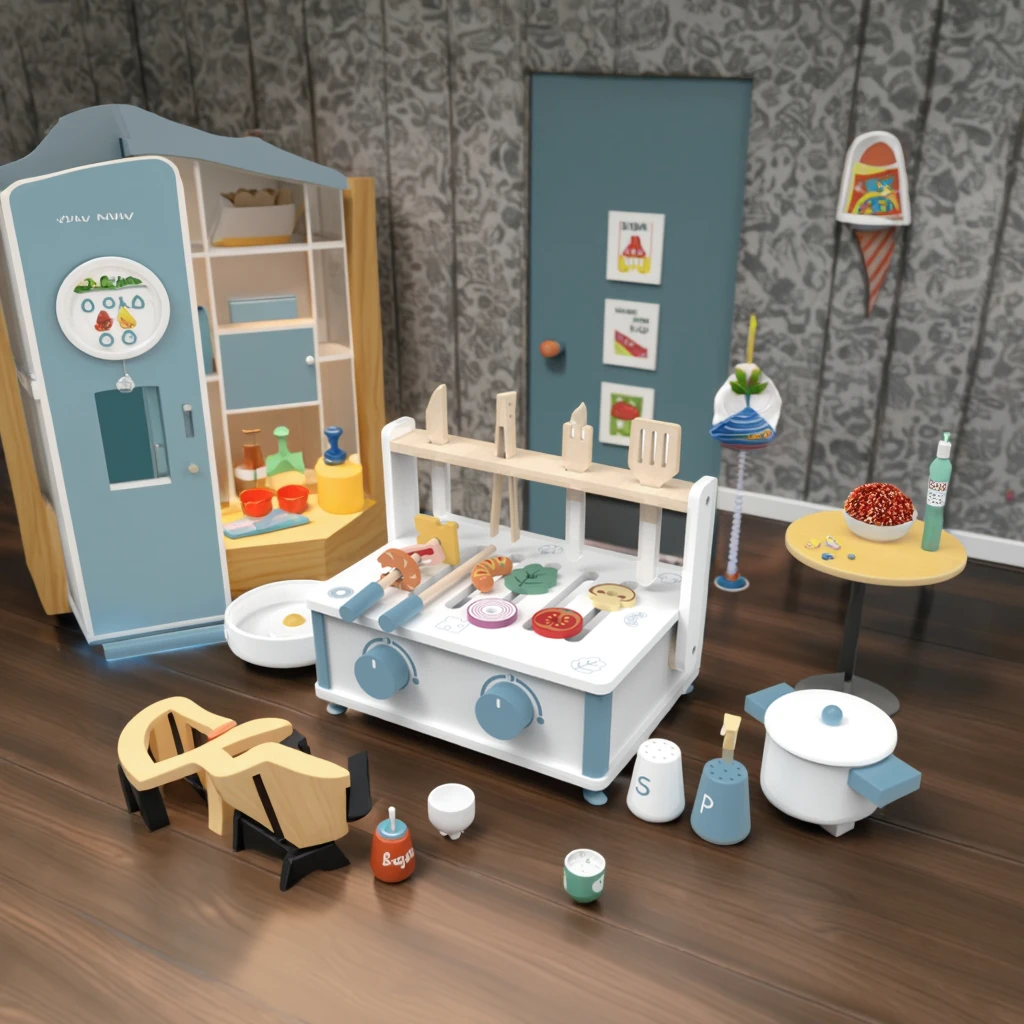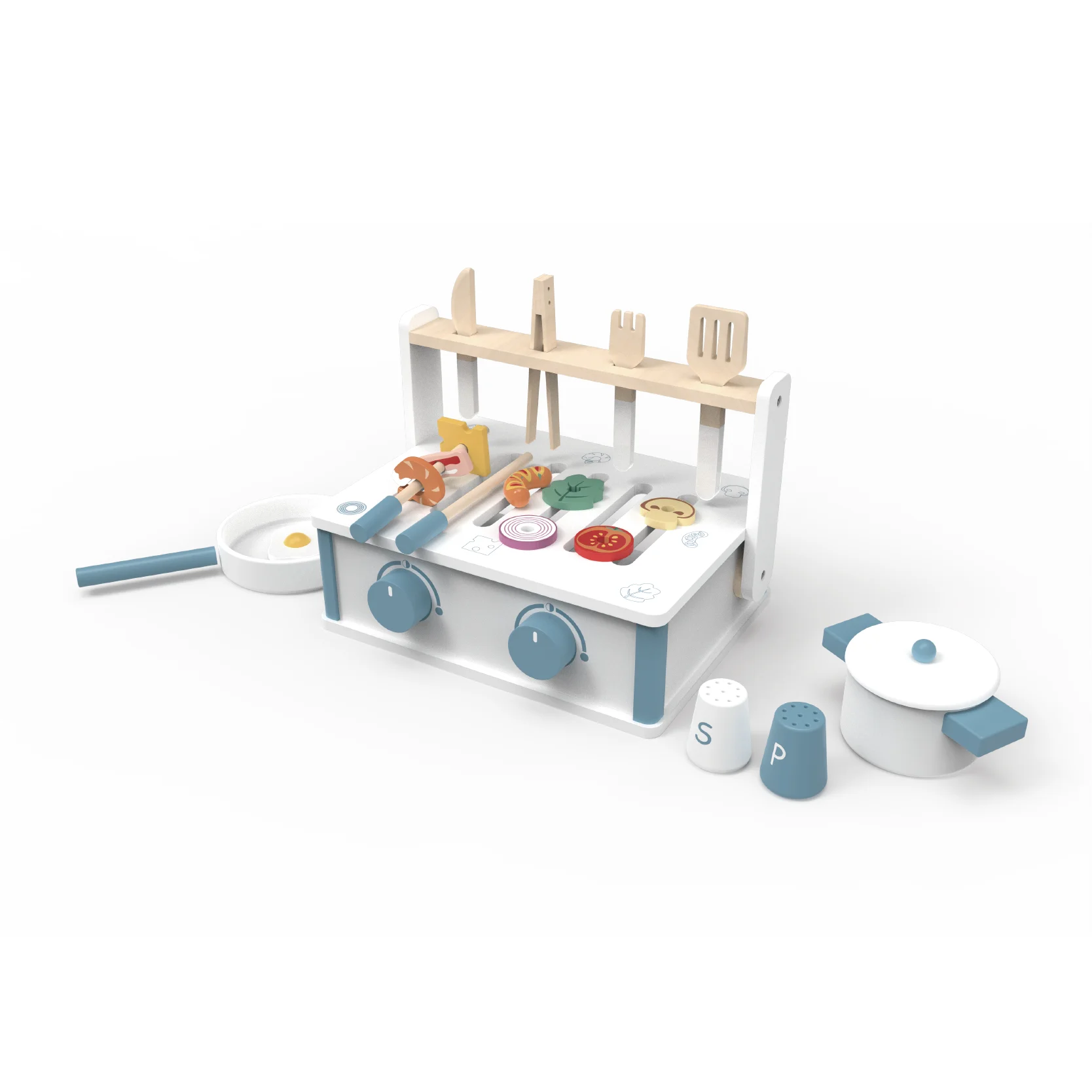EDULAND Modern Wooden Barbecue Grill Set Multifunctional Educational Food Toy 3 Years Old Kids' Induction Kitchen Food Toys