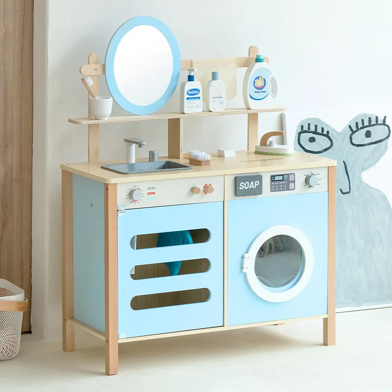 EDULAND Multifunctional Wood Material Washing Machine Toy Table Dresser Dryer Storage Cabinet Home Play Educational for Children