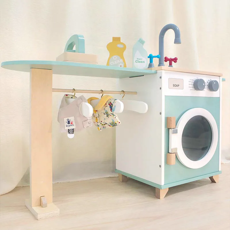 EDULAND Early Childhood Wooden MDF Washing Machine Toy EN71 Certified Pretend Play Set Intelligent Educational Role-Playing