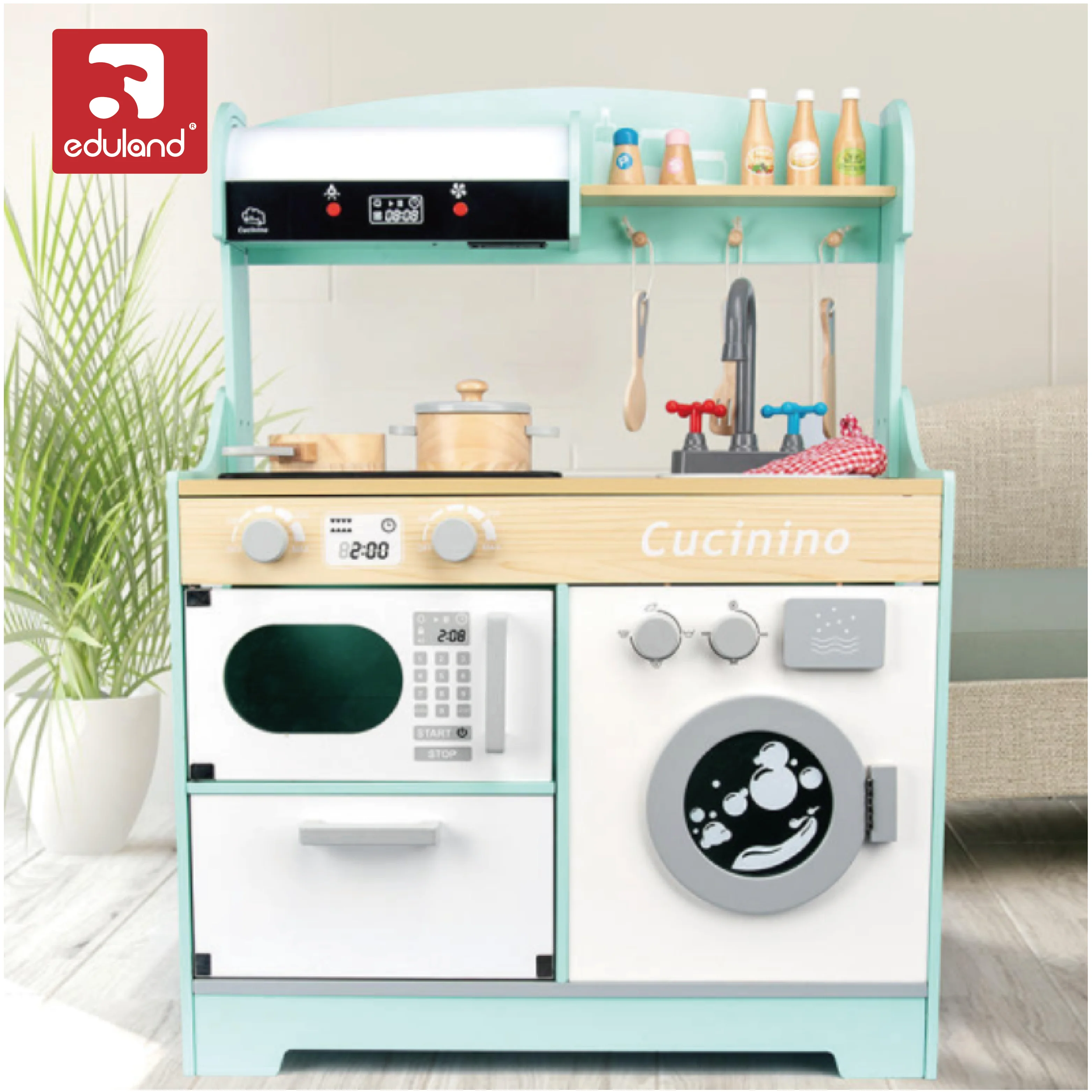 EDULAND Safe Unisex Wooden MDF Play Kitchen Set with Washing Machine Toy Microwave Oven for Kids Boys and Girls Toys
