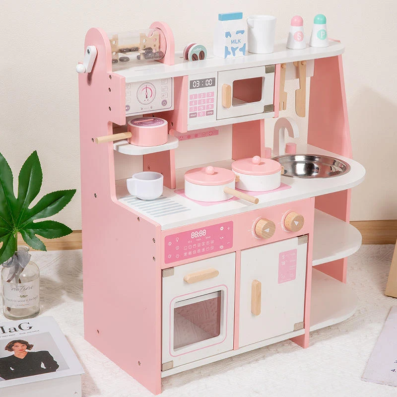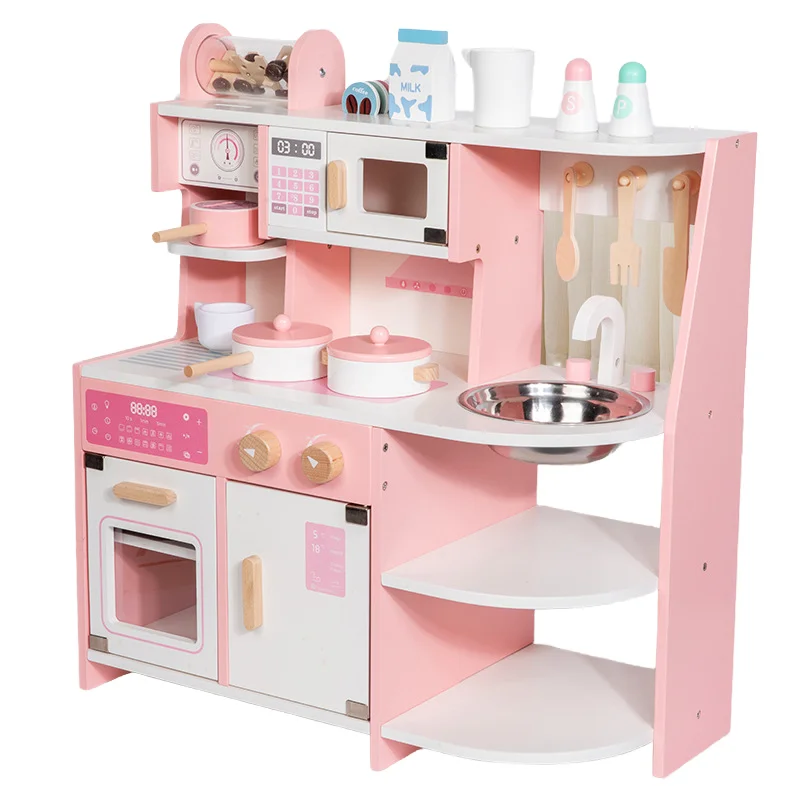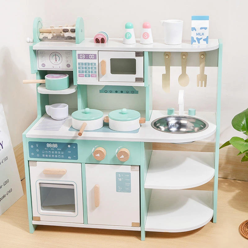 EDULAND Early Educational Role Play Wooden Cooking Toys Kitchen Set for Kids MDF Material Girls' Vegetable Pretend Play Toys