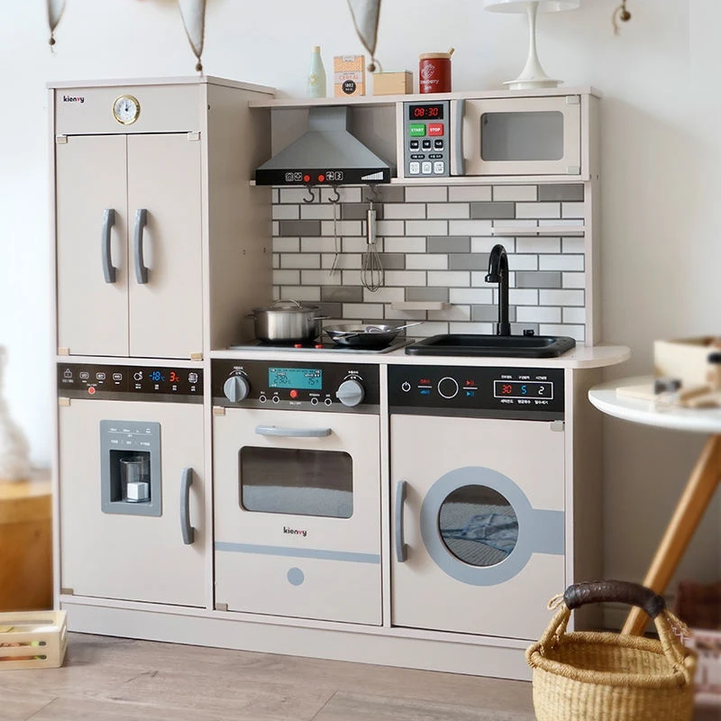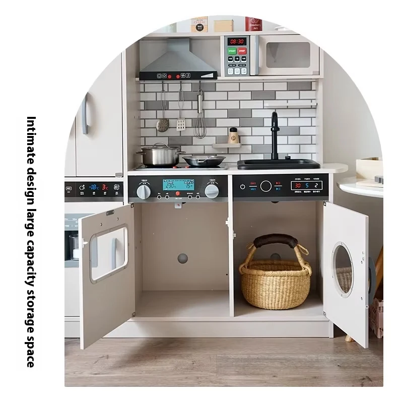 EDULAND Wooden Simulation Play Set Sound Light Water Kitchen Kids Toy Refrigerator Cooking Suit Cocina De Juguete Play