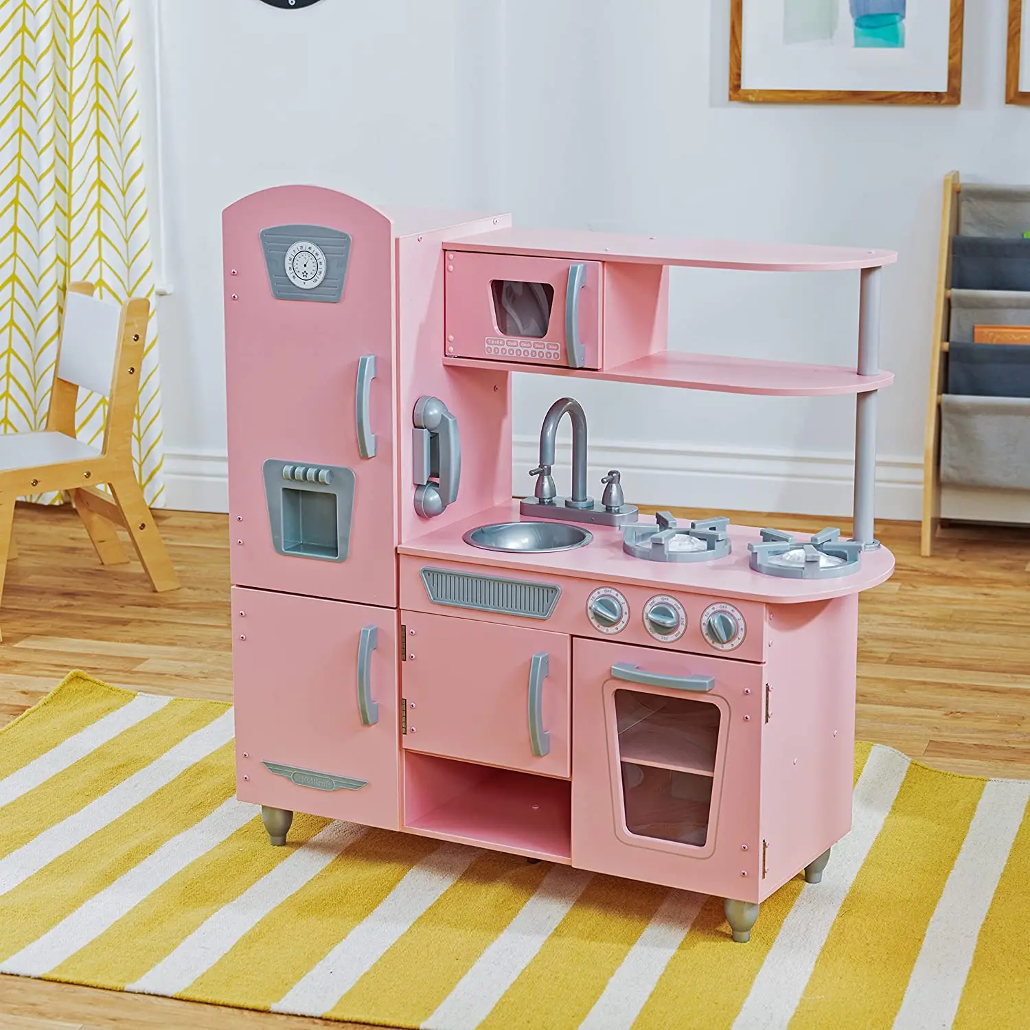 EDULAND School Children Montessori Refrigerator Kids Smart Miniature Wooden Play Kitchen Set Real Cooking Boys and Girls Toys