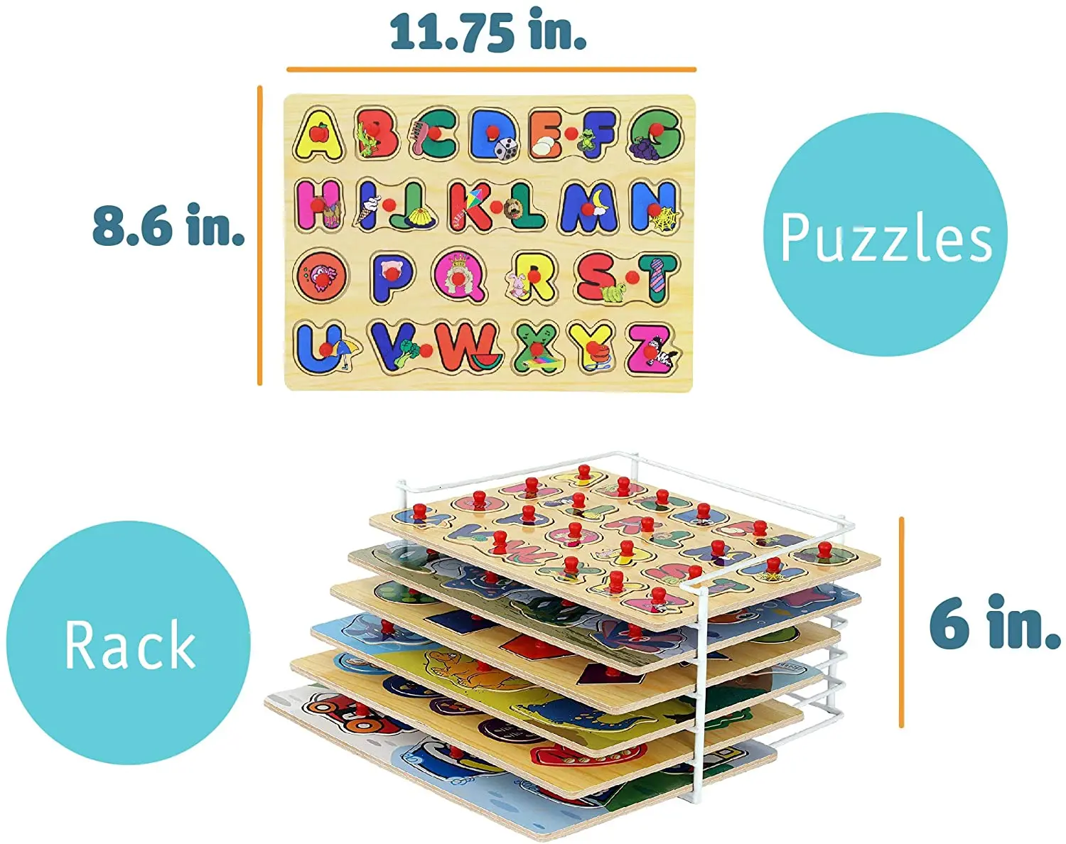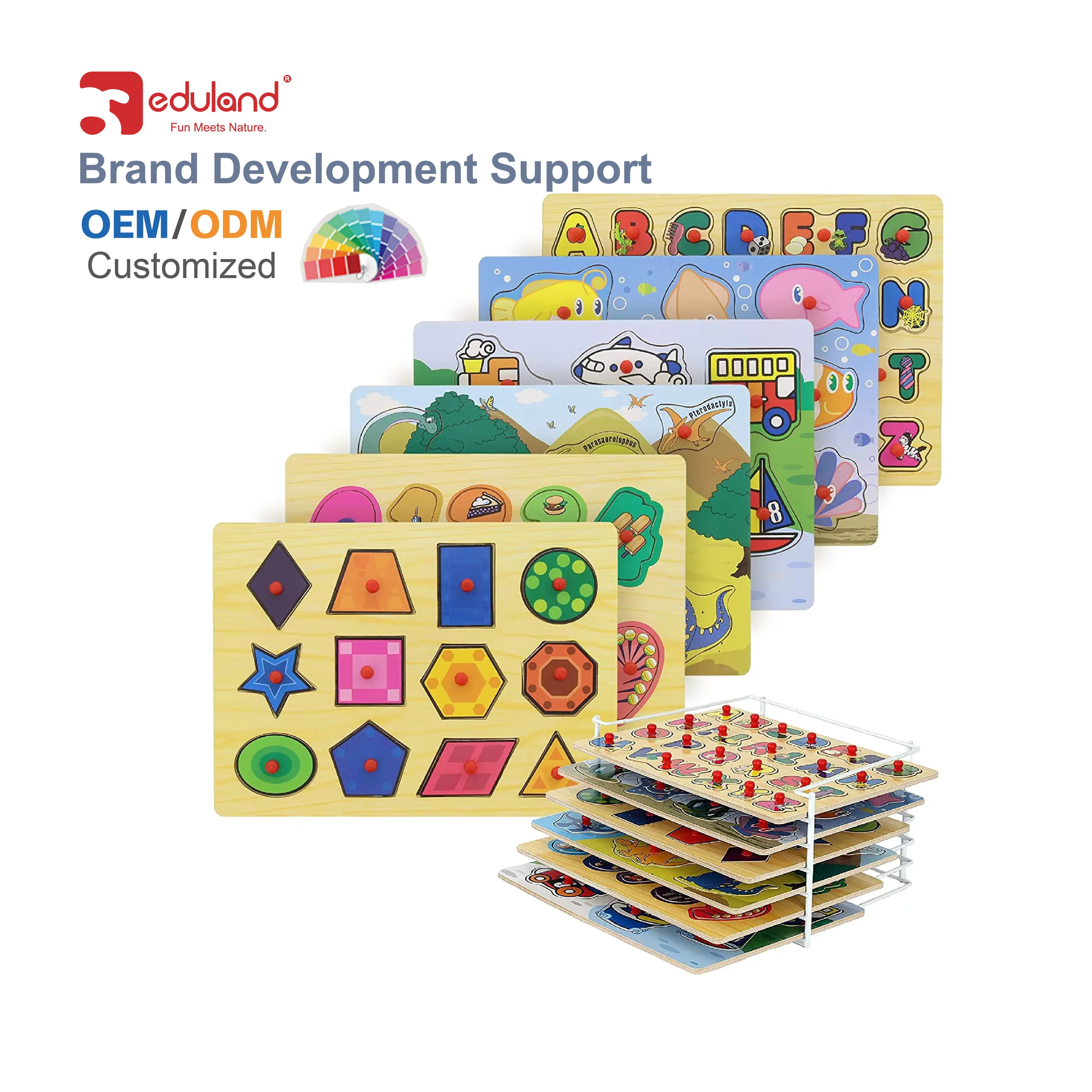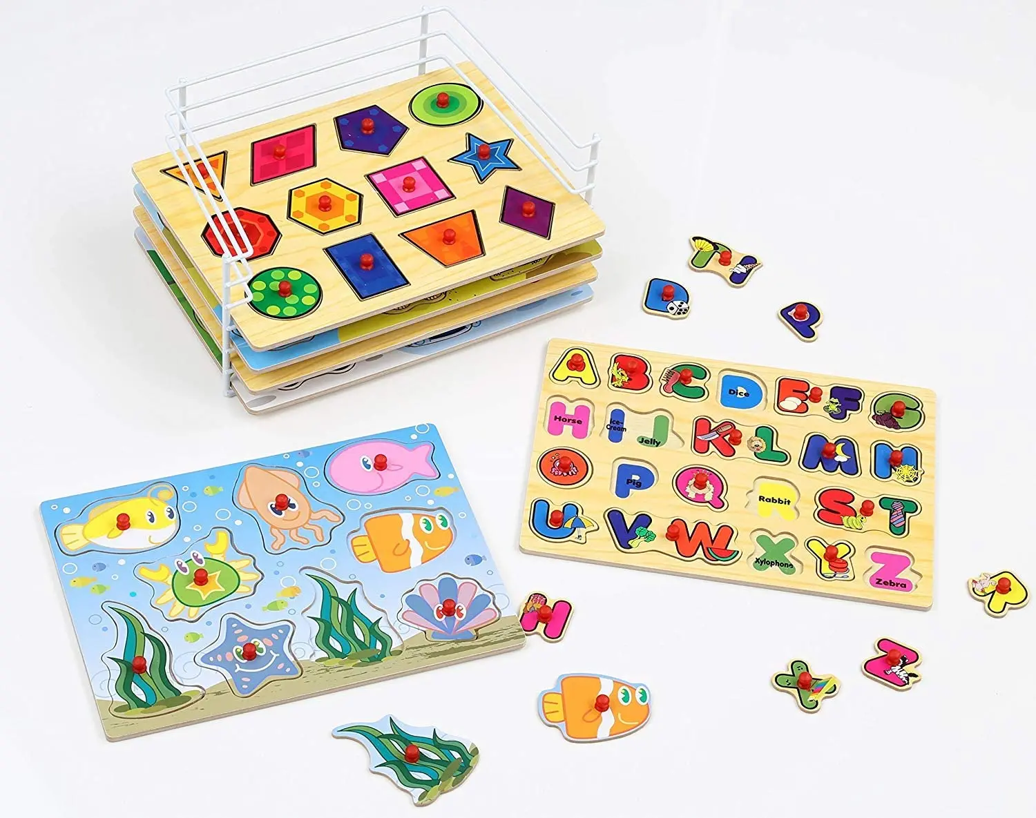 EDULAND Diy Educational Cartoon Pegged Puzzles Toy Wooden Sea Animal Shape Board for Kids' Play and Learning for 0-7 Years