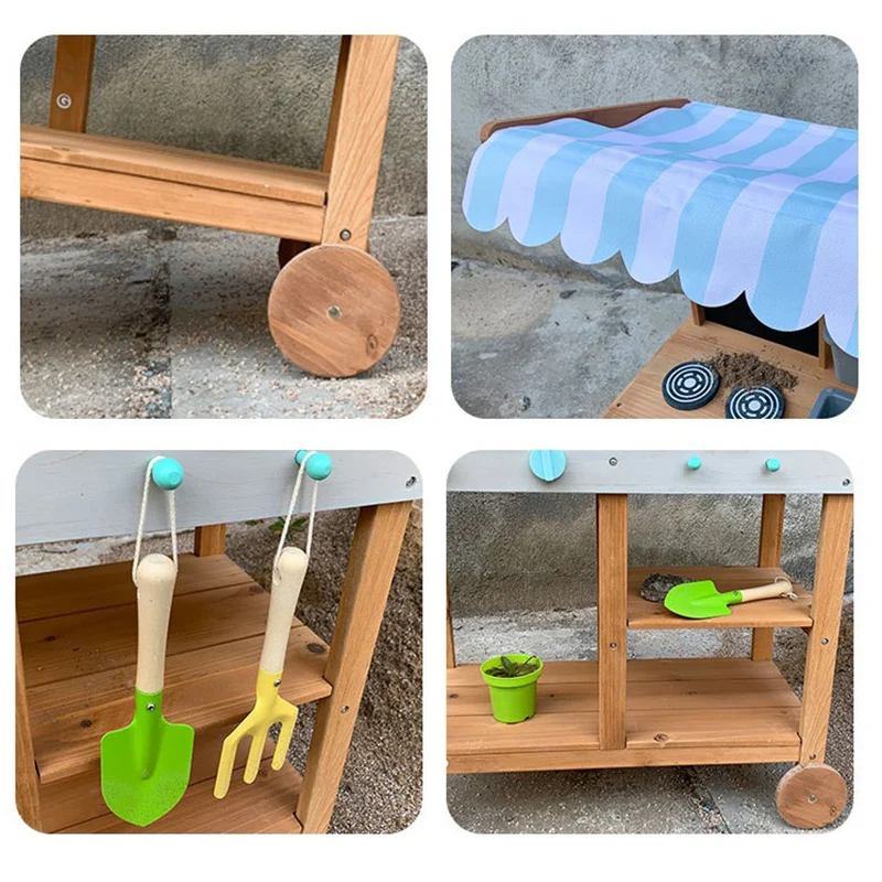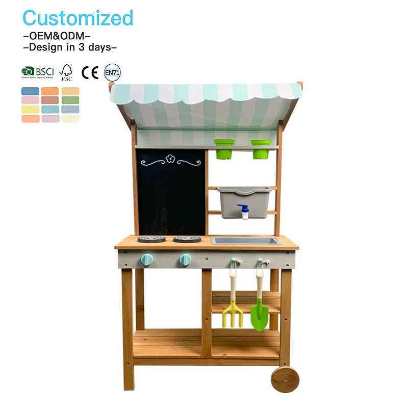 EDULAND Wooden Pretend Play Kitchen Kids Set with Mud Outdoor Kitchen Manufacturer Simulation Wooden Kitchen Set for Kids