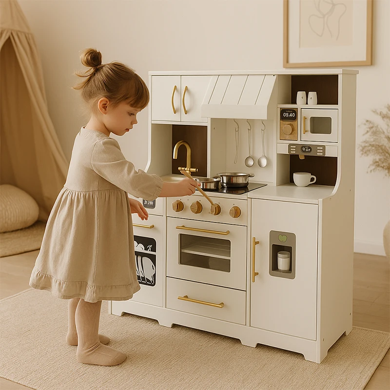 EDULAND Modern Wooden Play Big Kitchen Set Food Boys and GirlsToys Manufacturer Multifunctional Kids Play Kitchen for Children