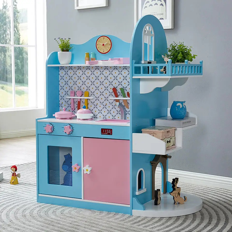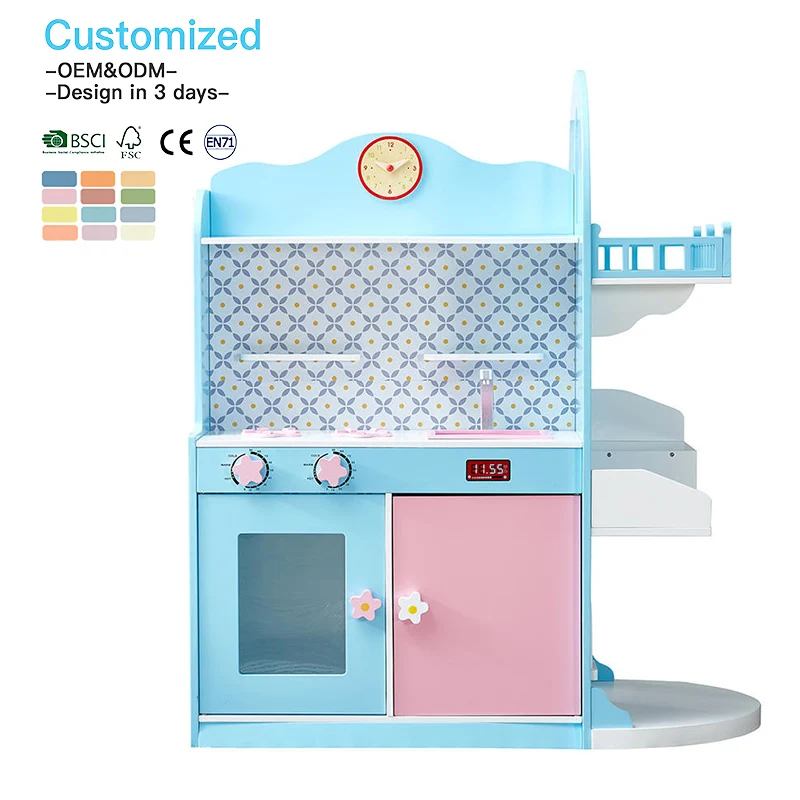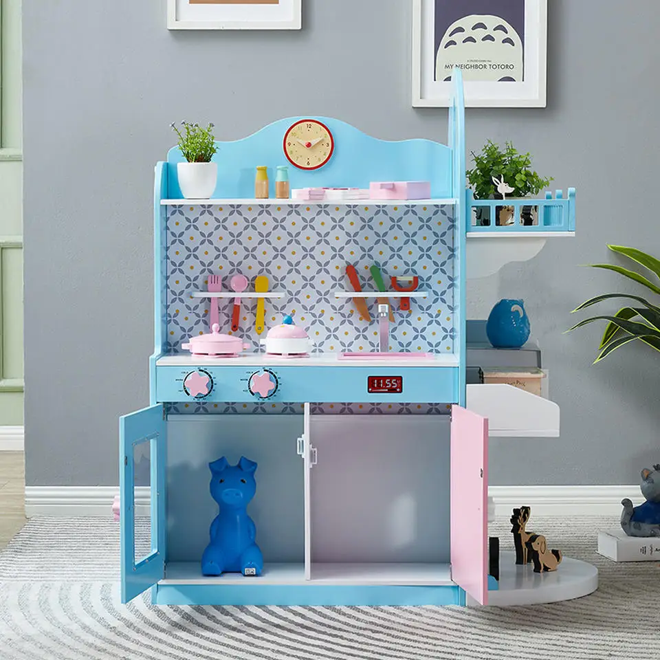 EDULAND Montessori Pretend Play Kitchen Set Toy Furniture Toys Wood With Accessories Big Wooden Kitchen Toys for Kids Girl