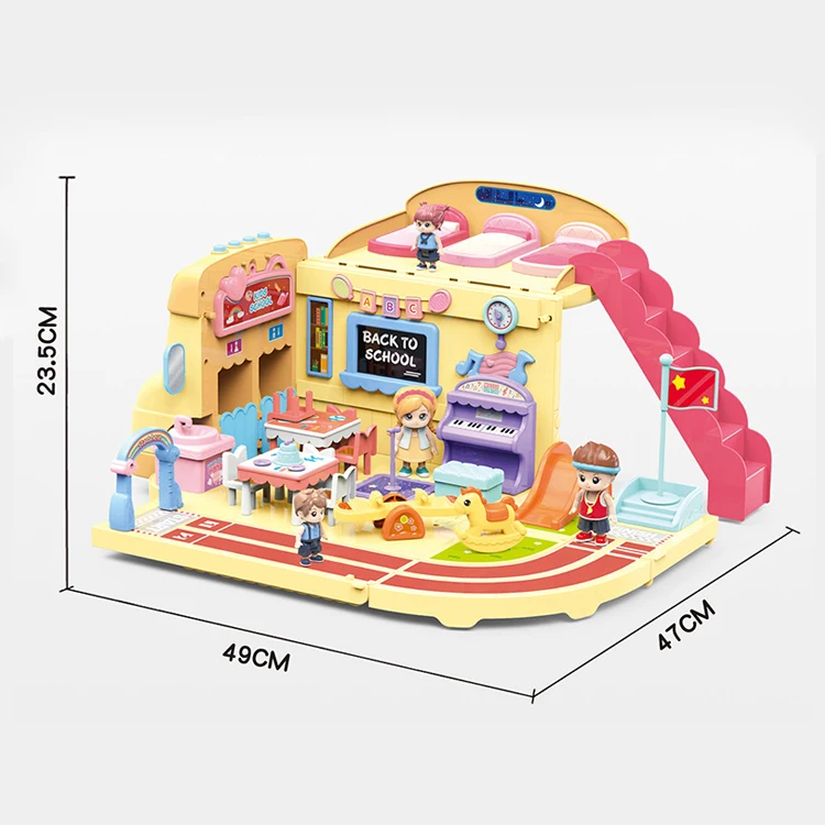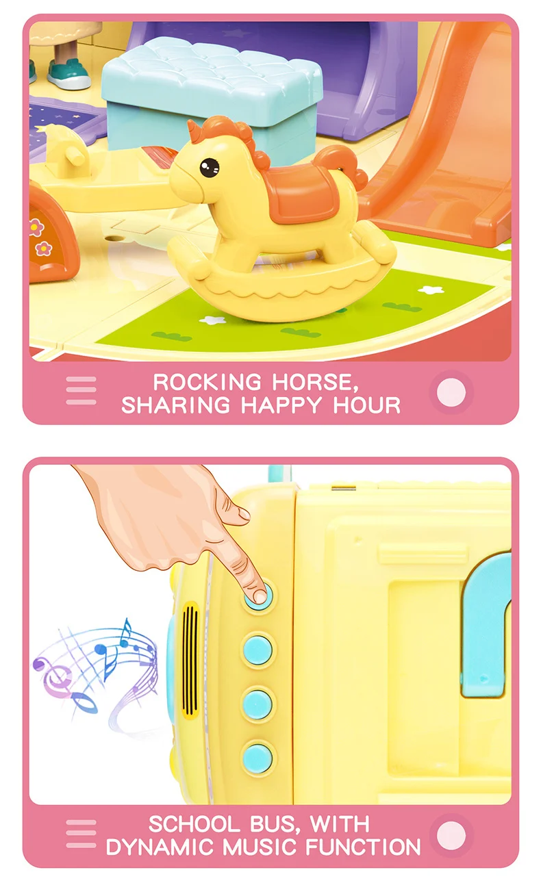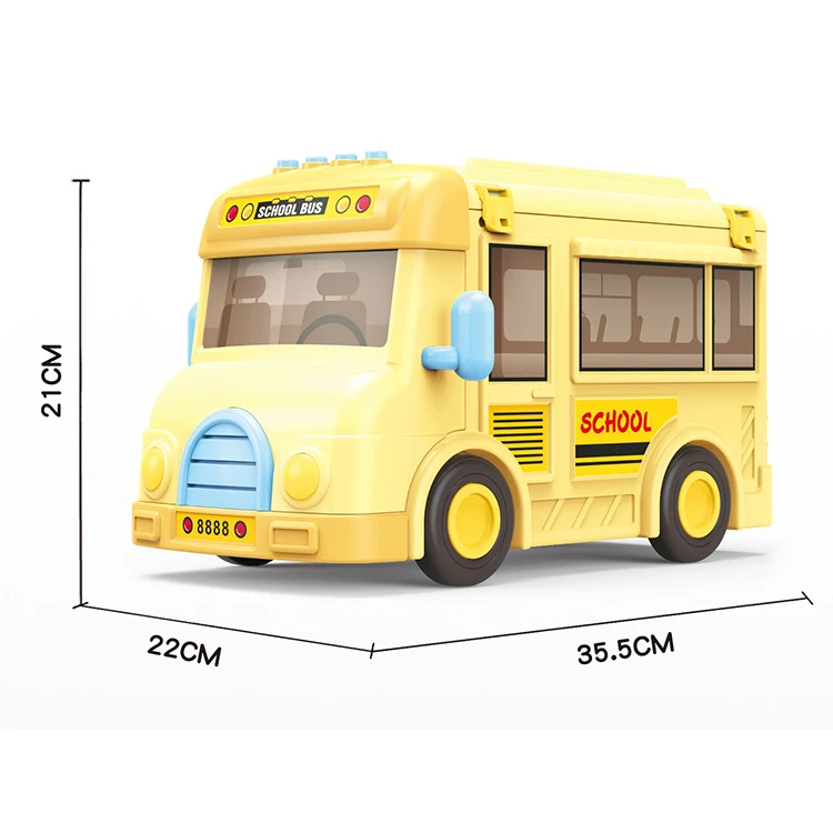 ITTL Assembled Cute School Bus Toy for Toddlers Mini Pretend Play Educational Scene Made of Plastic