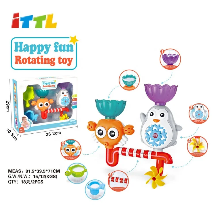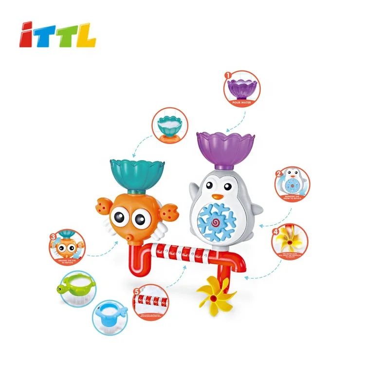 Cartoon Animal Penguin Crab Plastic Bath Toys Water Rolling Waterfall Playset for Kids in Bathroom