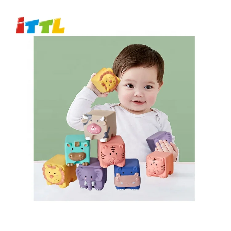 ITTL New Montessori Educational Sensory Toys Silicone Soft Stacking Blocks Plastic Baby Toys