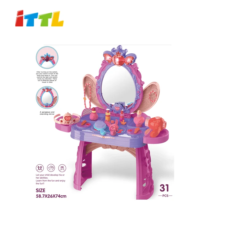 Interactive Plastic Children's Beauty Set Dressing Table with Light Music Educational Makeup Practice Toys for Girls Ring Type