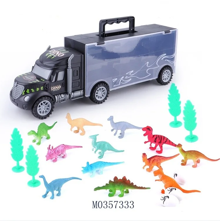 ITTL Free Wheel Toy Truck with 12pcs Solid Colorful Dinosaurs Plastic Pull Back Trailer Truck Toys for Child