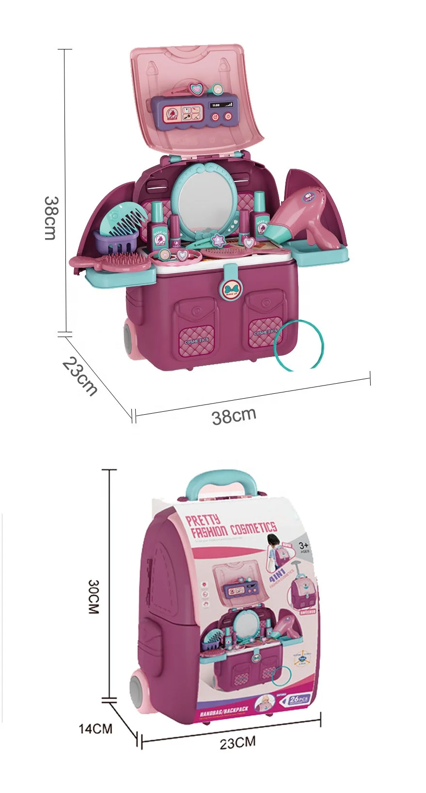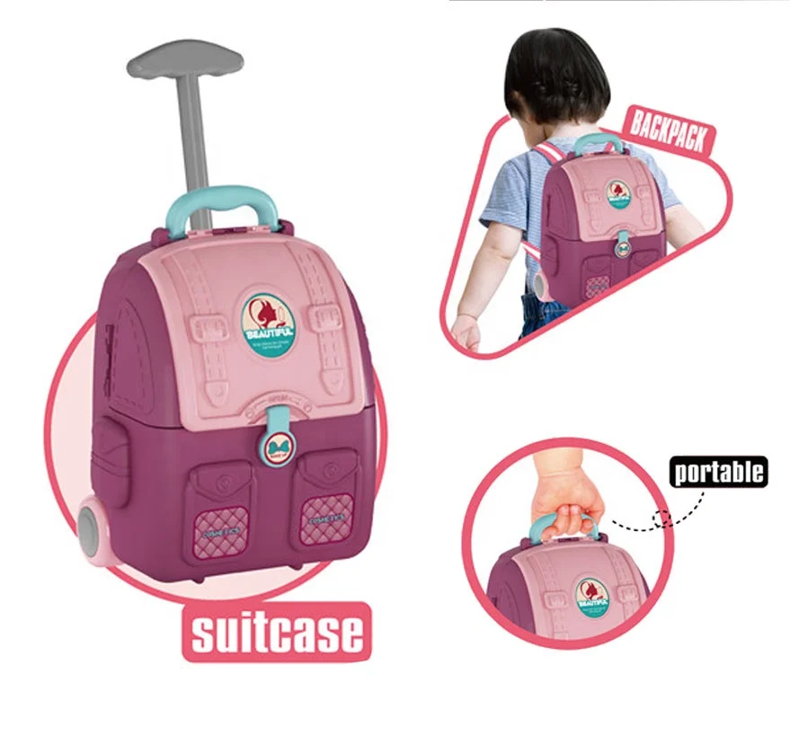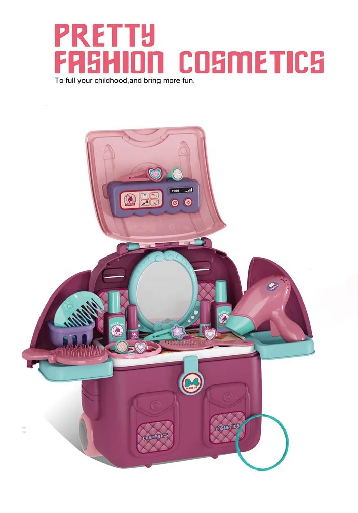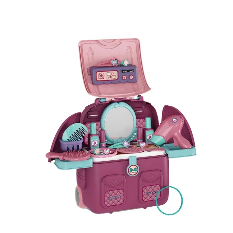 Plastic Kids Pretend Play Dressing Table Toy with Backpack Maquiagem Infantil Cosmetic Beauty Makeup Toy for Girls Preschool Age