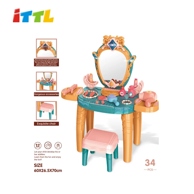 Hot Girl Interactive Plastic Children Beauty Set Educational Dressing Table with Light Music Chair Toy for Beauty Enthusiasts