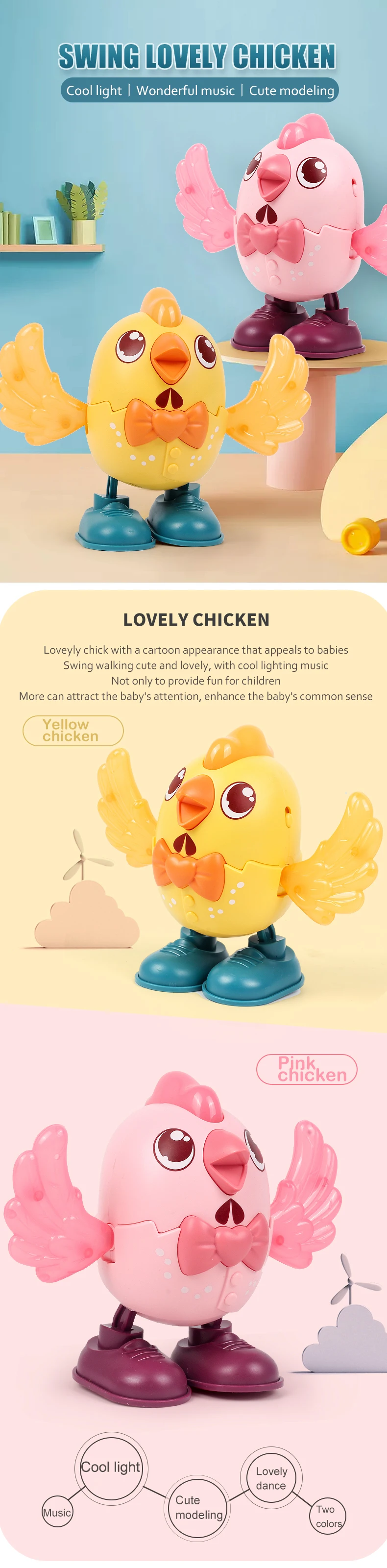 Hot Selling Mini Plastic Electric Luminous Dancing Swing Chicken Toy Sensory Toys for Babies Electronic Pets