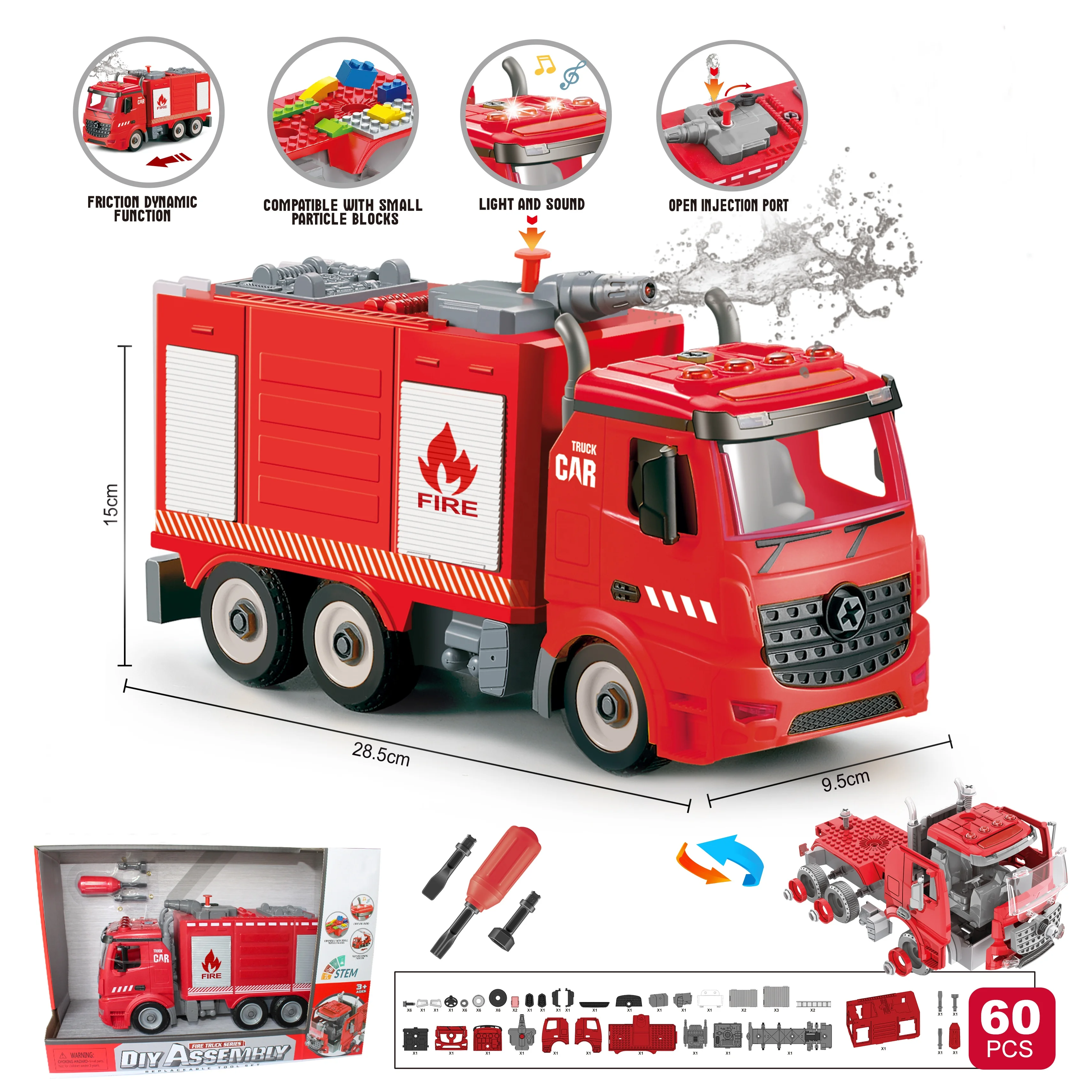ITTL STEAM TOY DIY ASSEMBLY PULL BACK ENGINEERING RESCUE TRUCK WITH LIGHT and MUSIC