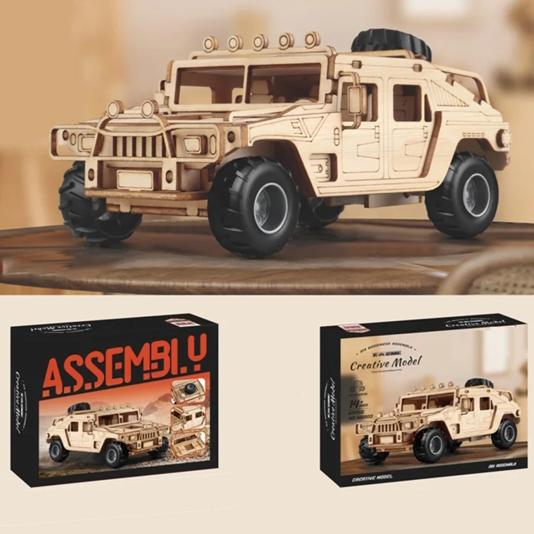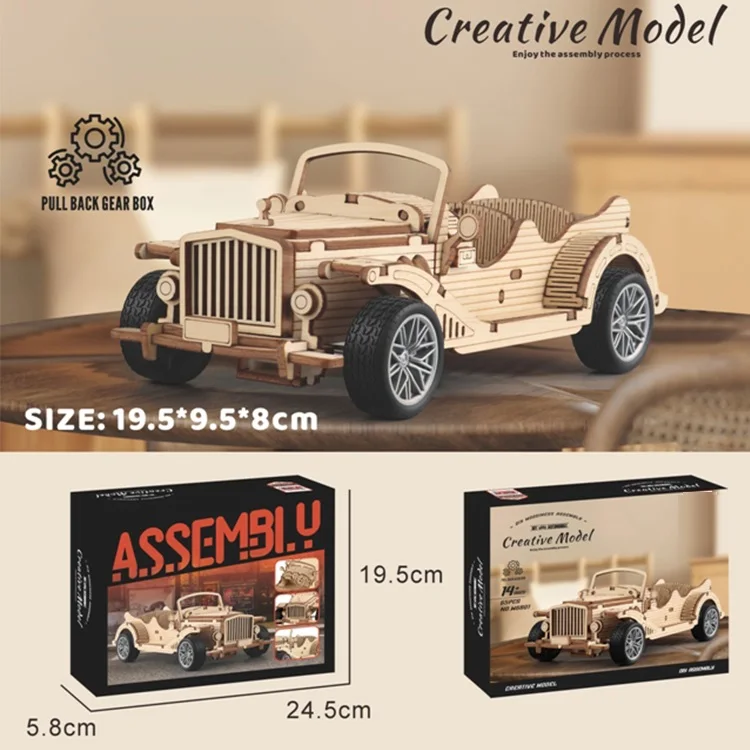 DIY Essay Assemble Wood Toy Car Pull Back Creative Car Models Wooden Toys