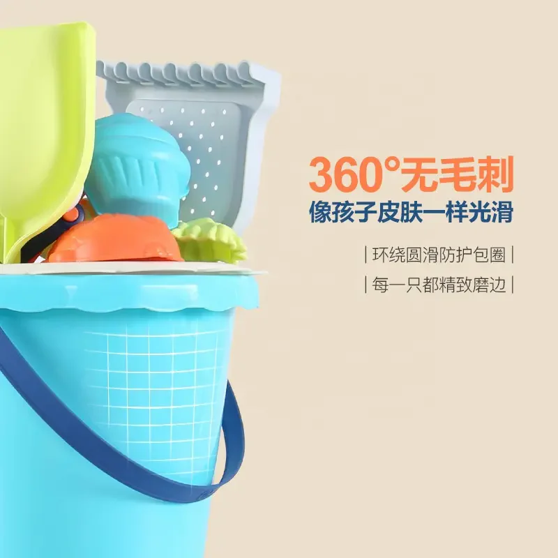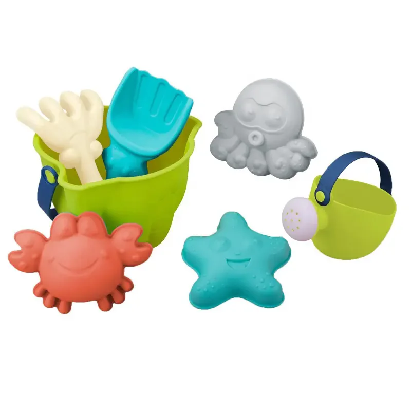 ITTL Indoor and Outdoor Playing 7pcs Kids Beach Toy Set Soft Plastic Beach Bucket