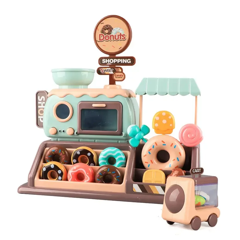 ITTL Plastic Doughnut Shop Play Food Set Children's Role Play House Music Light Candy Cart Toy for Kid