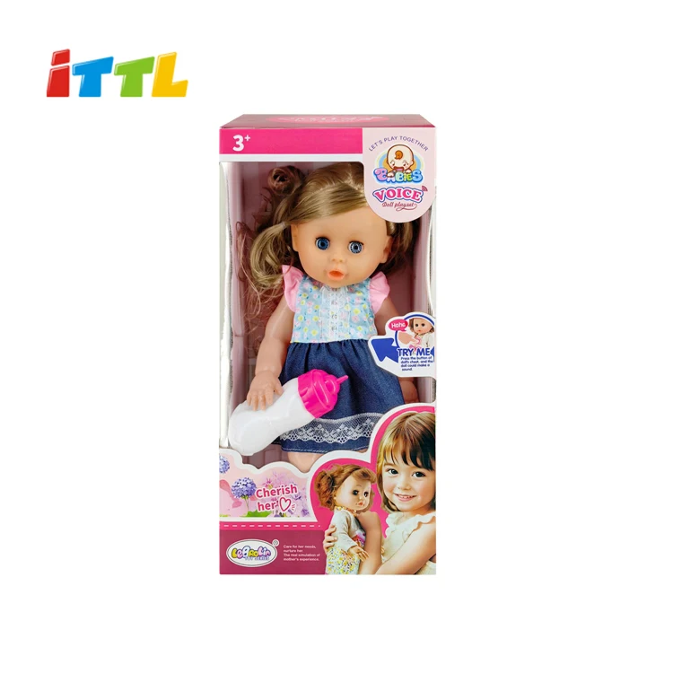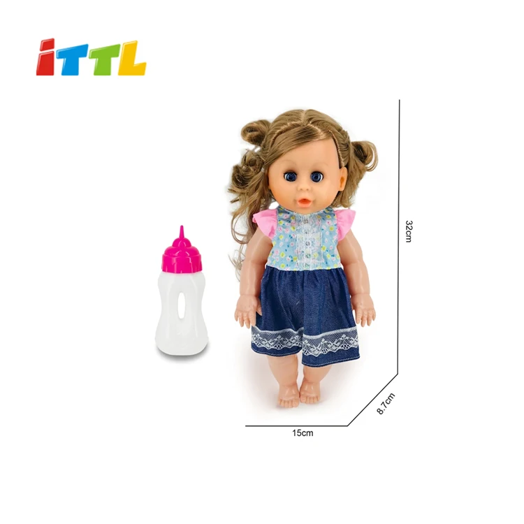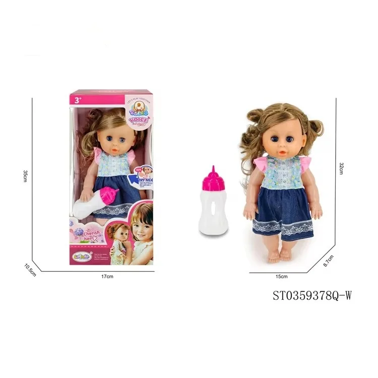 14-Inch Funny Vinyl Pee and Drinking Girl Doll with 12 Sounds Educational Plastic Accessory Toy