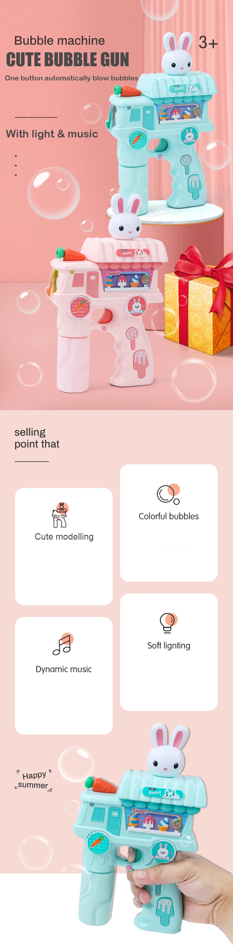 Hot Summer Children's Plastic Bubble Machine Popular Blue Cute Design Perfect Toy for Kids