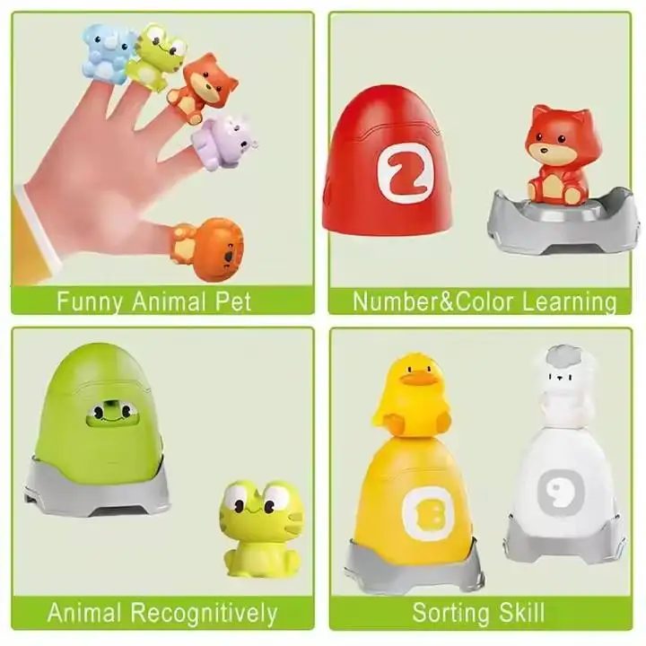ITTL Counting Animal Matching Games Color Recognition Early Educational Toy Baby Montessori Sensory Finger Puppet Toys for Kids