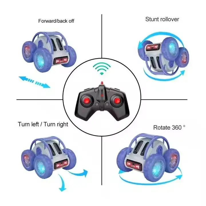 ITTL 2.4G RC 4CH Drift Cars Outdoors Remote Control 360 Rotation Rolling Race Stunt Rollover Car with Led Light Toys for Kids