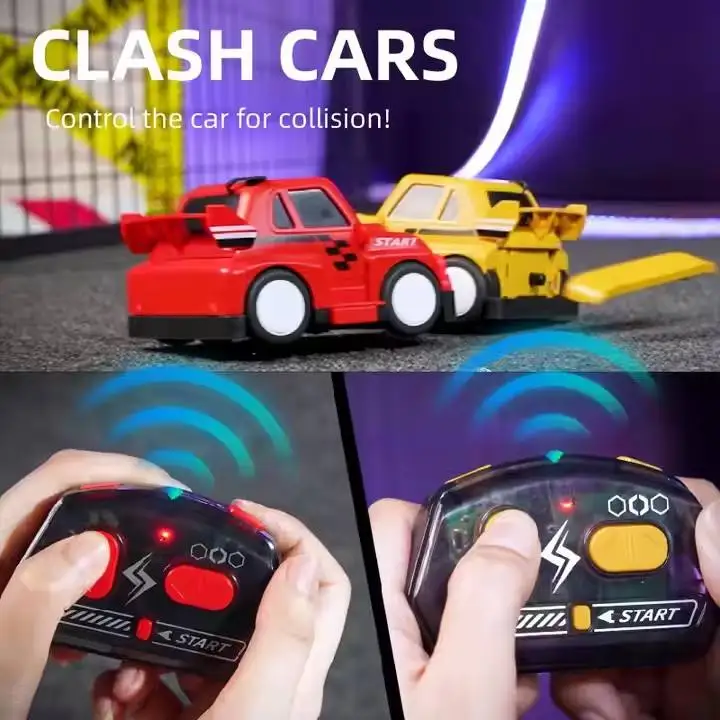 ITTL 2.4G Remote Control Crash Car 2 Players RC Spraying Ejecting Bumper Cars with Light Sound Football Battle Car Toys for Kids