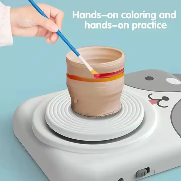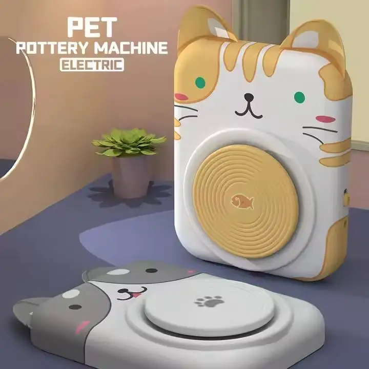 ITTL Creative Electric Pet Pottery Machine Cartoon DIY Art Crafts Kit Adjustable Speed Portable Beginners Durable Toys for Kids