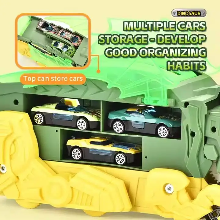 ITTL New Inertial Dinosaur Toy Press Car Educational Cartoon Animal DIY Slide Wheels Disassembly 3 Cars Slot Toys for Kids