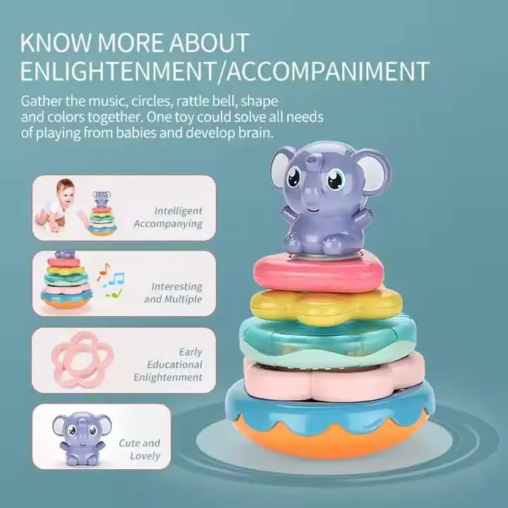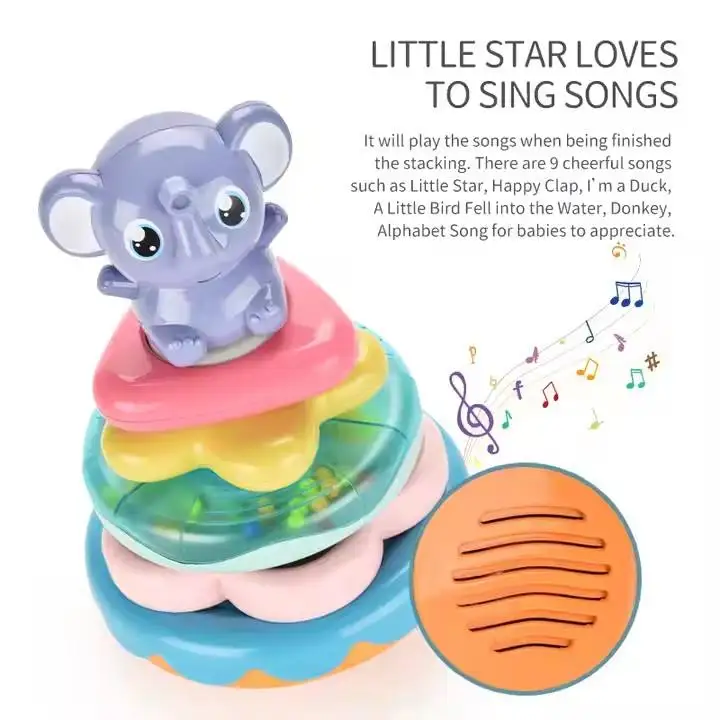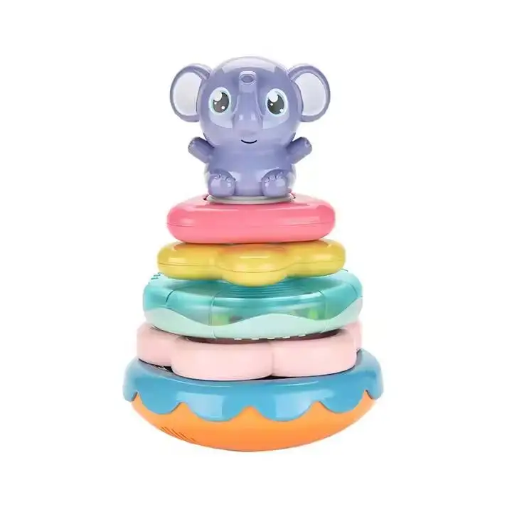 ITTL Multi-functional Baby Enlightenment Educational Elephant Stacking Tumbler Set Musical Rainbow Stacking Ring Toys for Kids