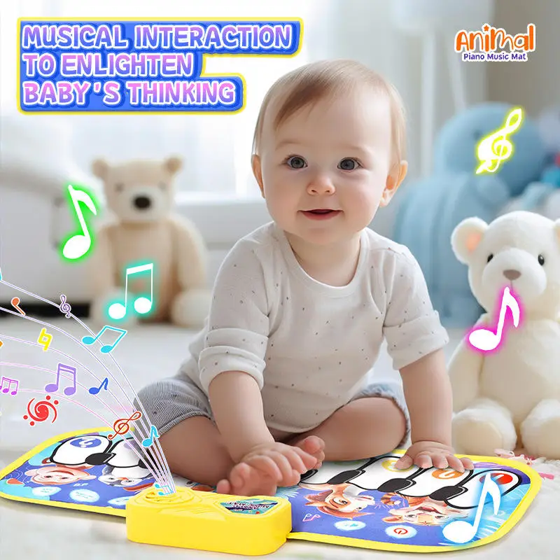 ITTL Early Education Musical Play Mats Starry Sky Carpet 6 Animal Sounds Piano Keyboard Dinosaur Design Musical Toys for Kids