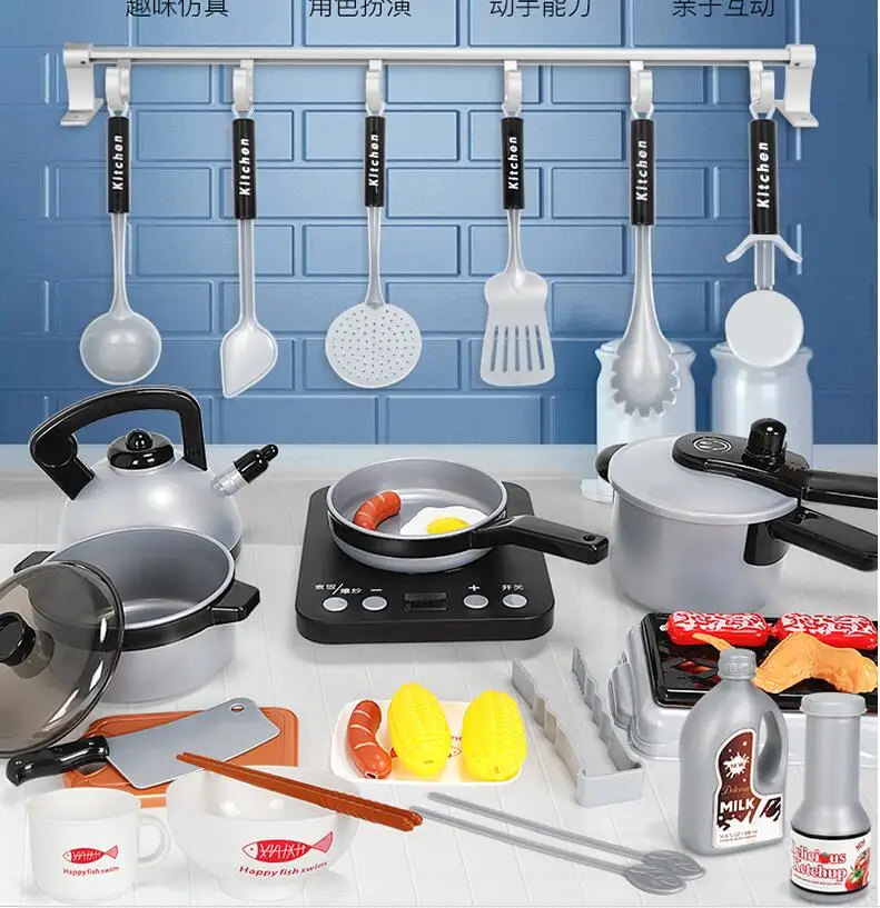 ITTL Education Children's Kitchen Set Toy Pretend Play Cooking Game with Light Sound Music Early Learning Kitchen Toys for Kids
