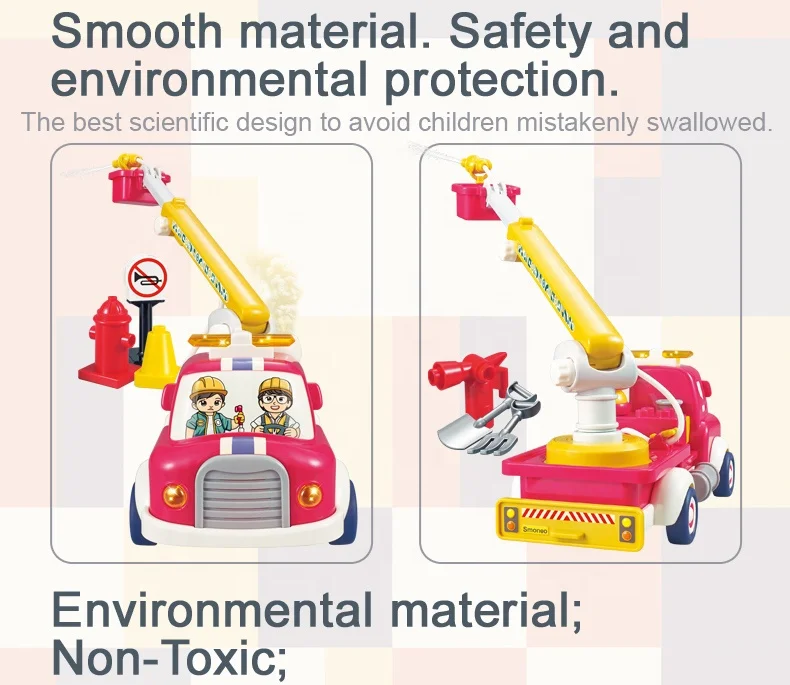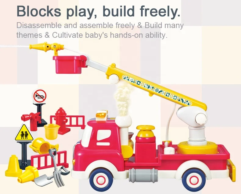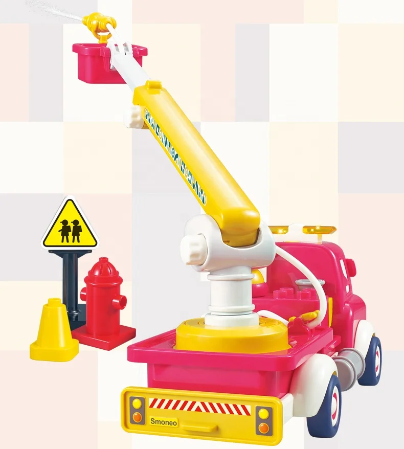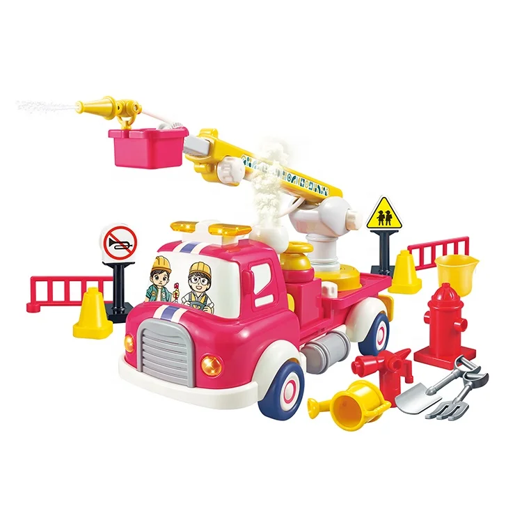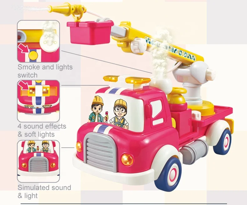 ITTL New Cartoon B/O Battery Operated Fire Fighting Truck Toy Friction Inductive Pull Back Car Light Music Unisex 2-4 Years