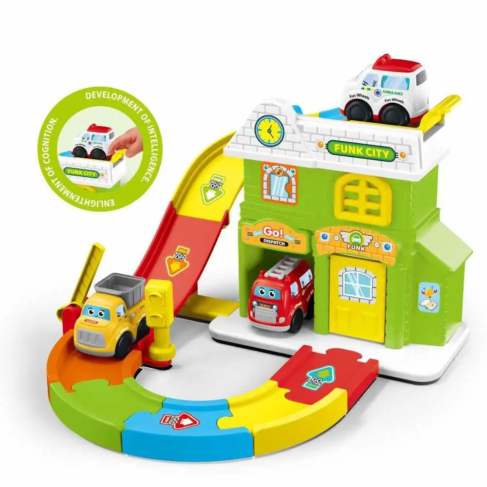 ITTL Children City Center Parking Lot Toys DIY Parking Garage Creative Baby Sliding Engineering Truck with 1 Car Toys for Kids