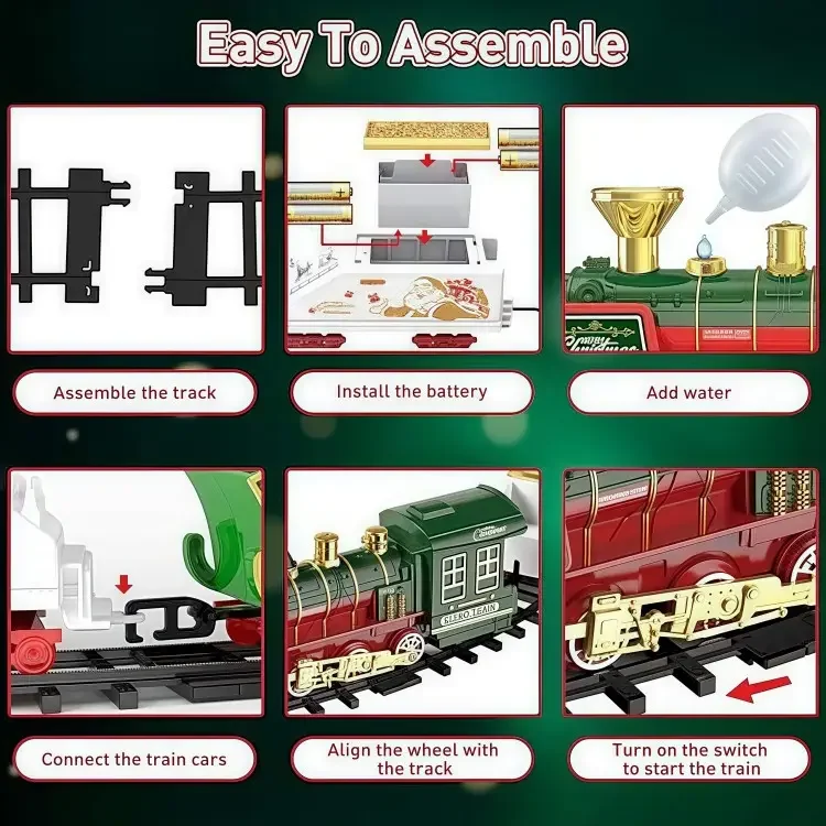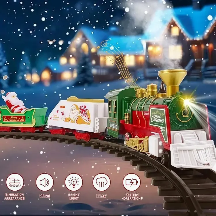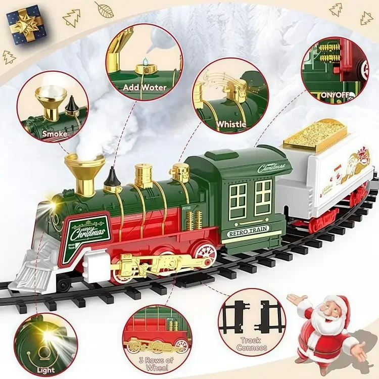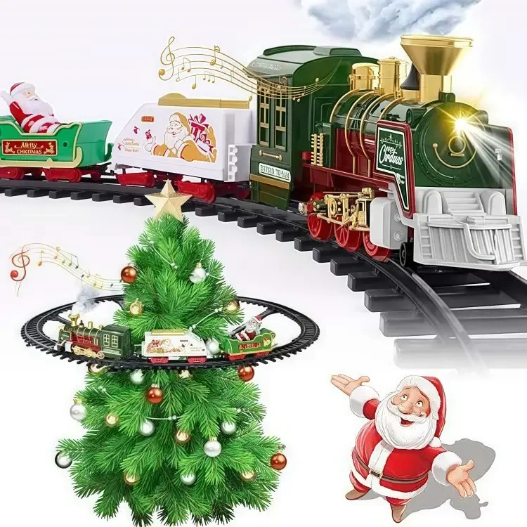 ITTL Classical Christmas Electric Rail Train Set Kids Christmas Toy with Plastic Railway Train Track Perfect Gift for Kids