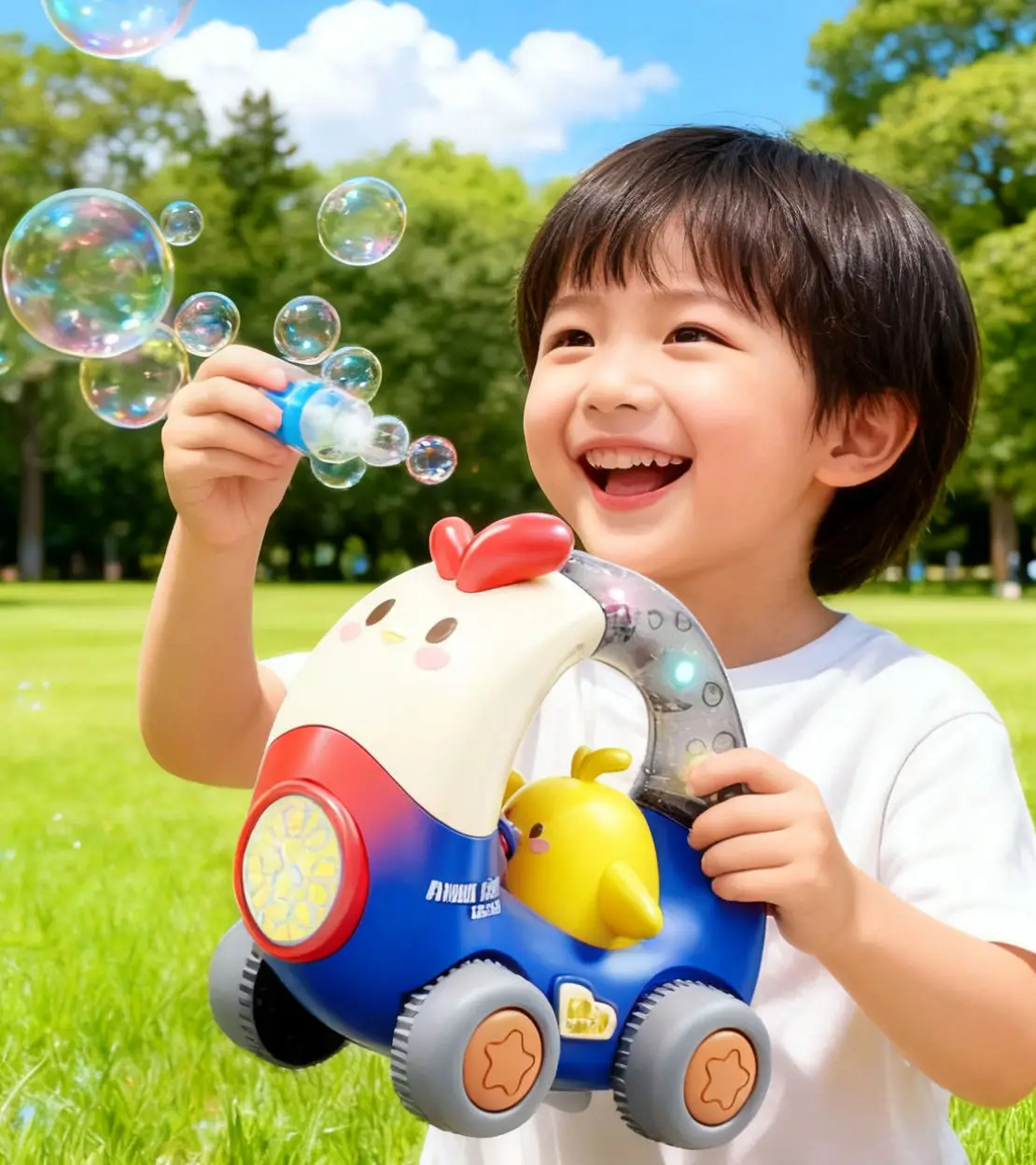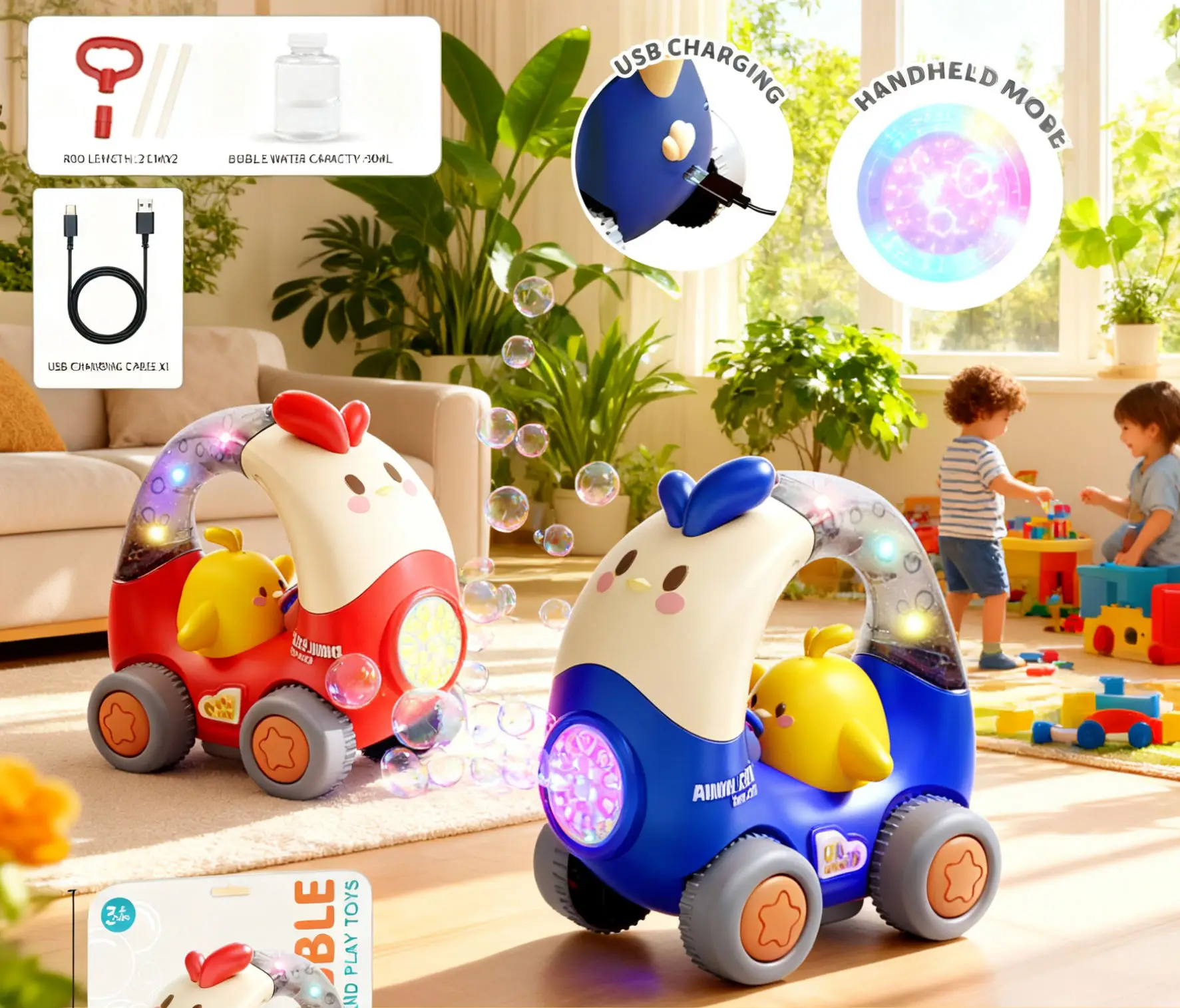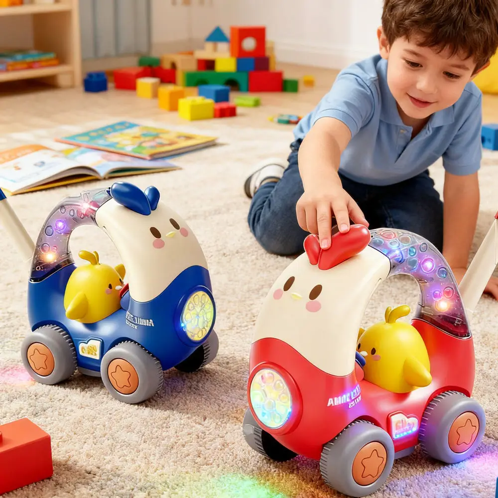 ITTL New Children Electronic Push and Play Toy Bubble Little Chick with 10 Holes Colorful Lighting Baby Walker Toys for Kids