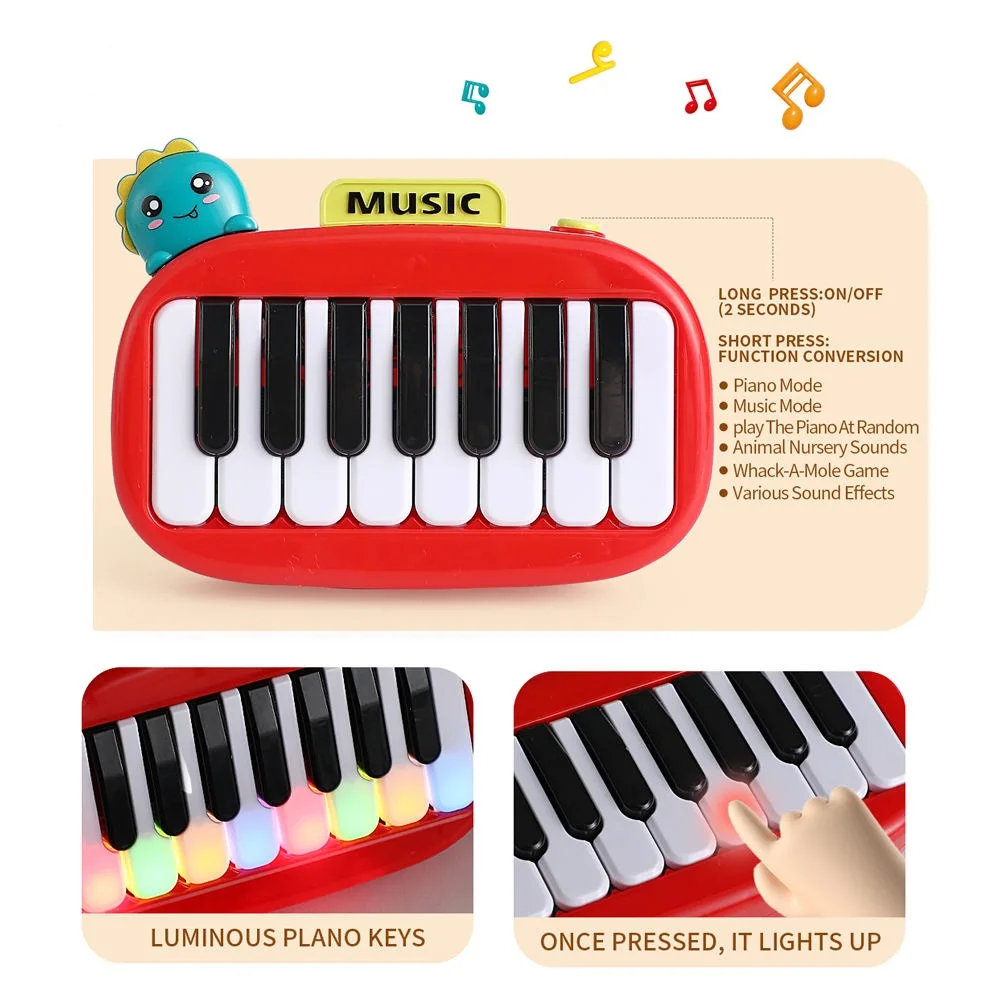 ITTL Creative Puzzle Early Education Music Small Portable Piano Lighting Dinosaur Pocket Cartoon Animal Piano Toys for Kids