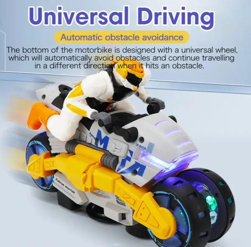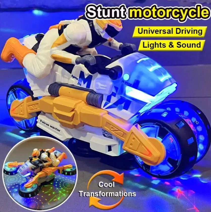 ITTL B/O Deformation Motorbike Cool Light-up Music Universal Wheel 360 Degree Rotation Electric Stunt Motorcycle Toys for Kids